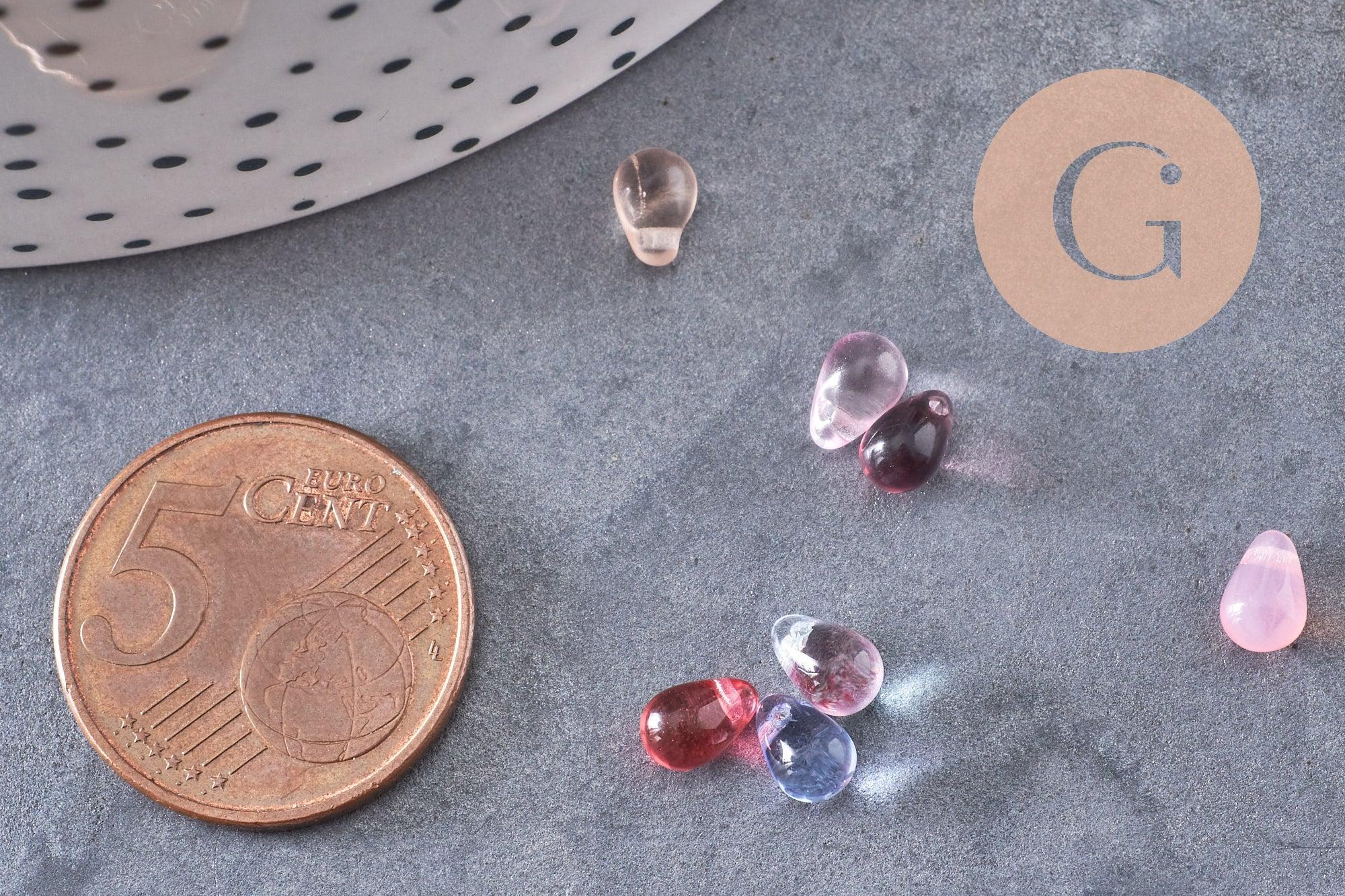 Añade un toque brillante y elegante a tus creaciones con estas cuentas multicolores en forma de lágrima de cristal checo .