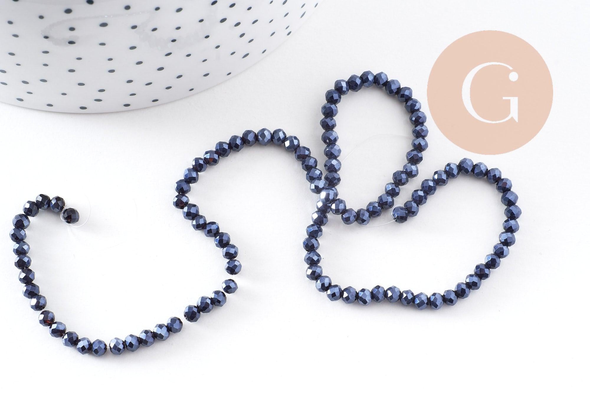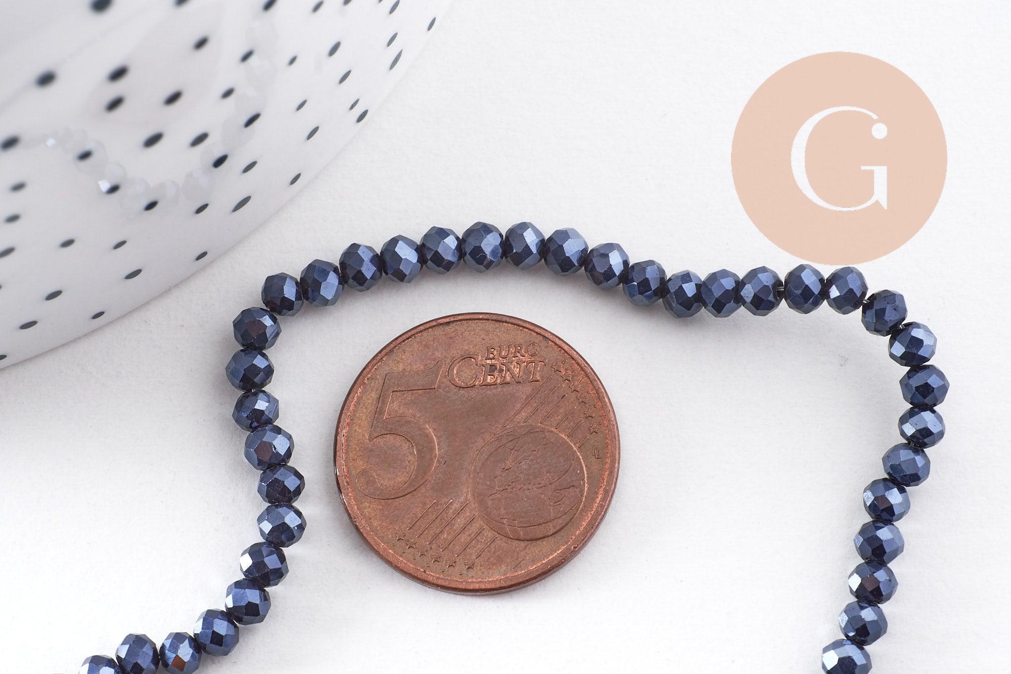 Cuentas de ábaco facetadas de cristal negro iridiscente gris de 3 x 2 mm, 1 tira de 32 cm (G5424)