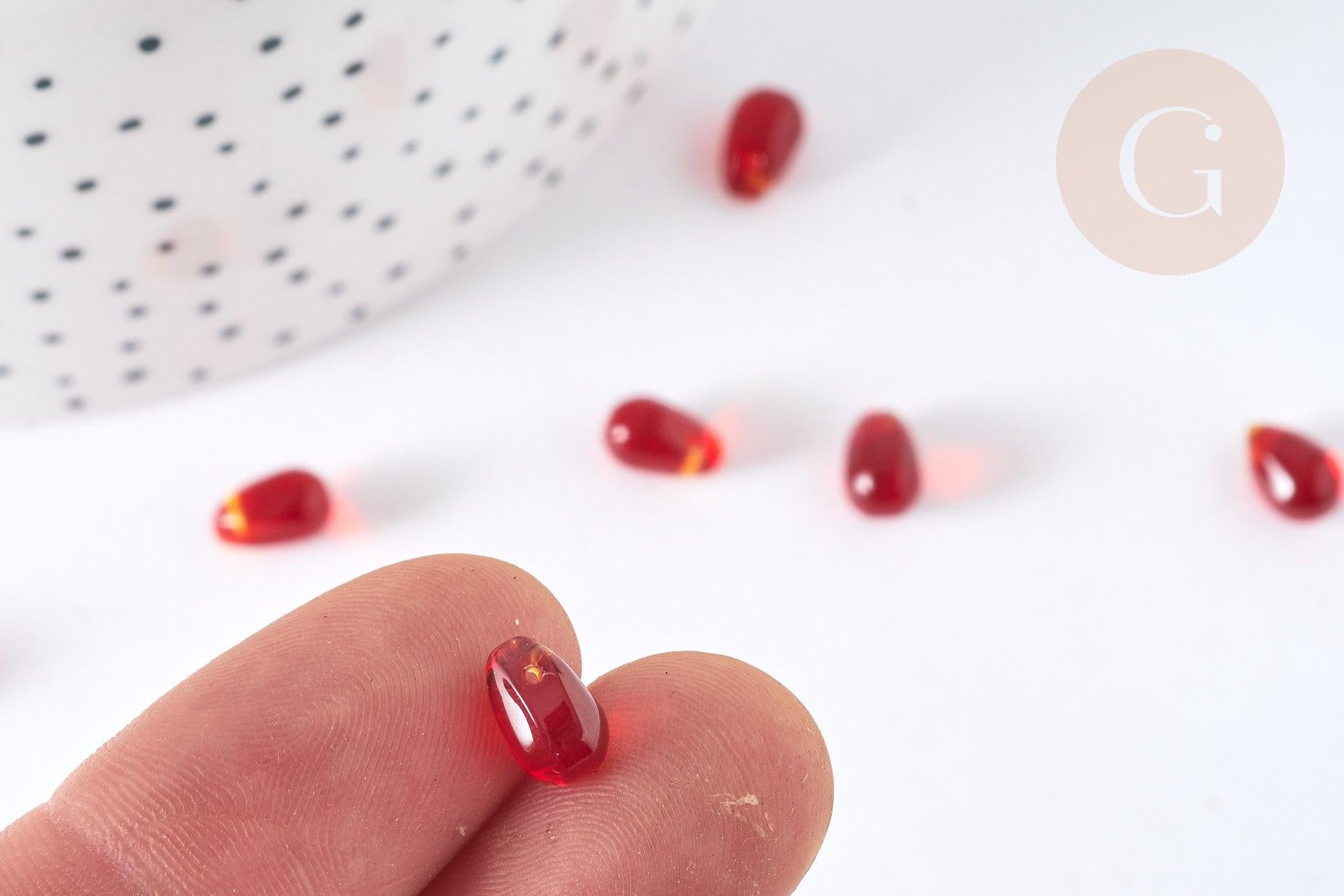 Perlas de cristal transparente gota roja 9 mm, vidrio, x50 (G7296)
