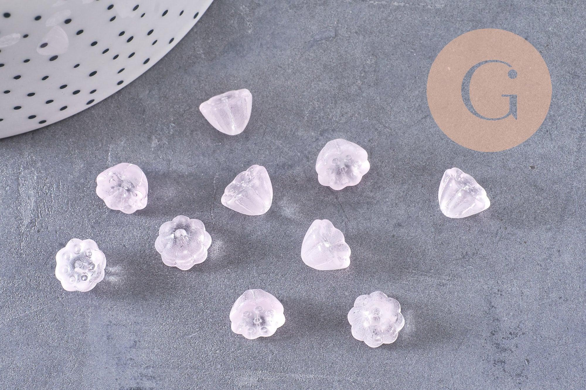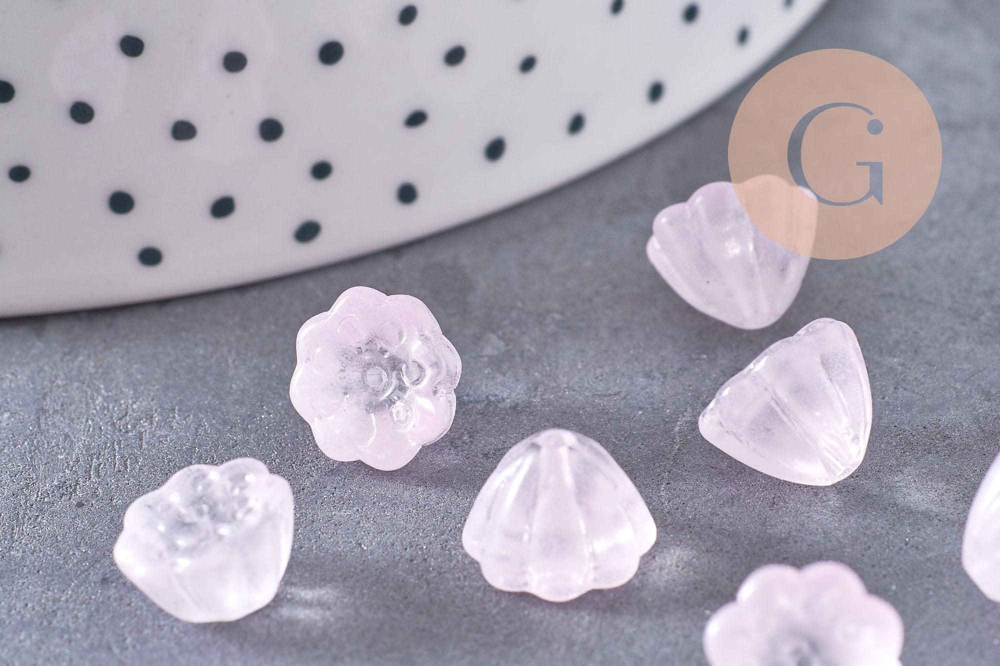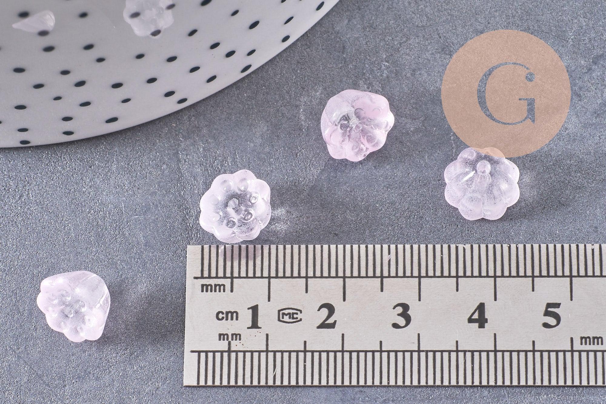 Cuentas de flores de vidrio rosa muy claro, cuentas de vidrio checo, cuentas de flores, vidrio púrpura, creación de joyas, 11 mm, lote de 10 cuentas
