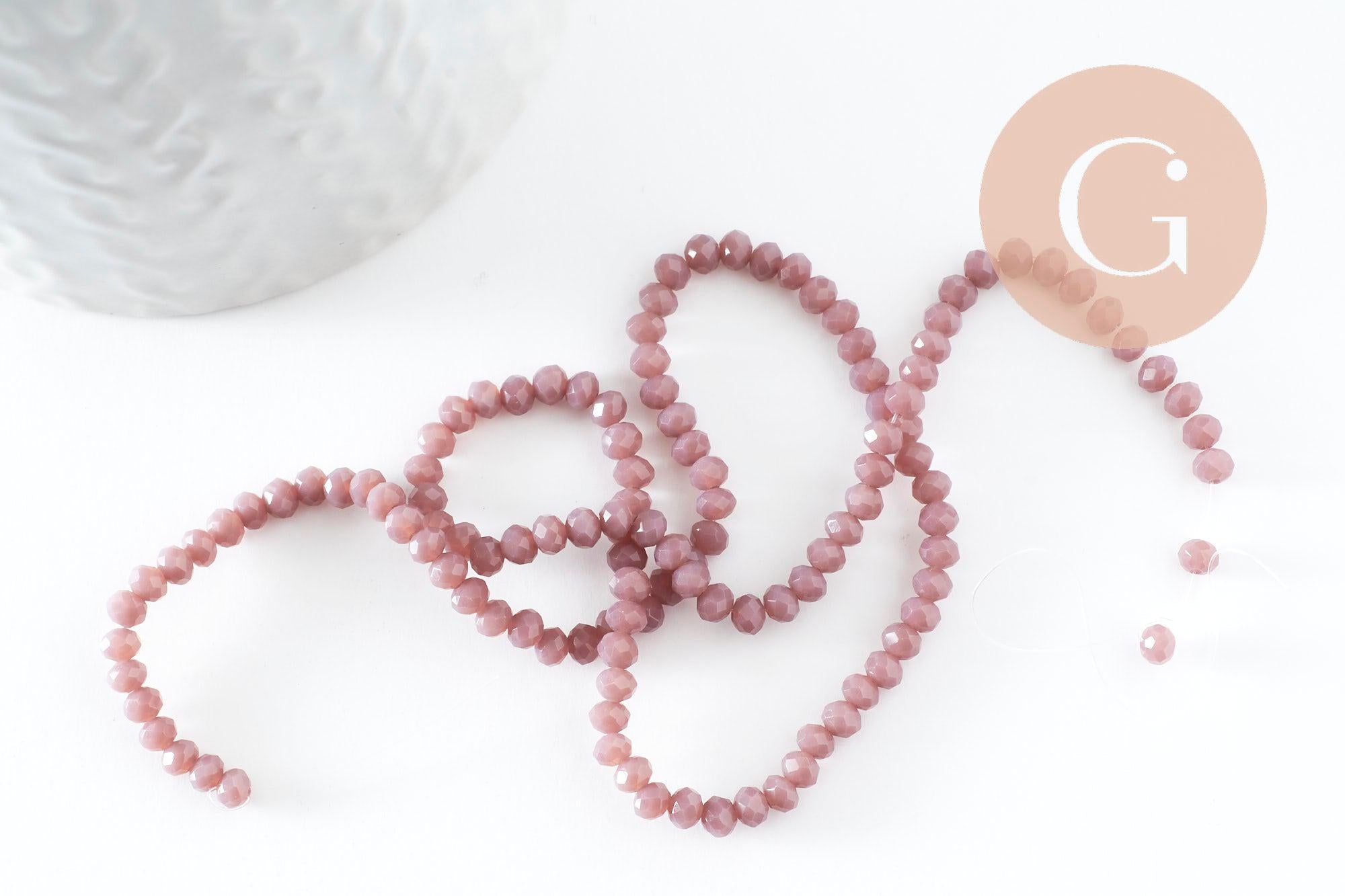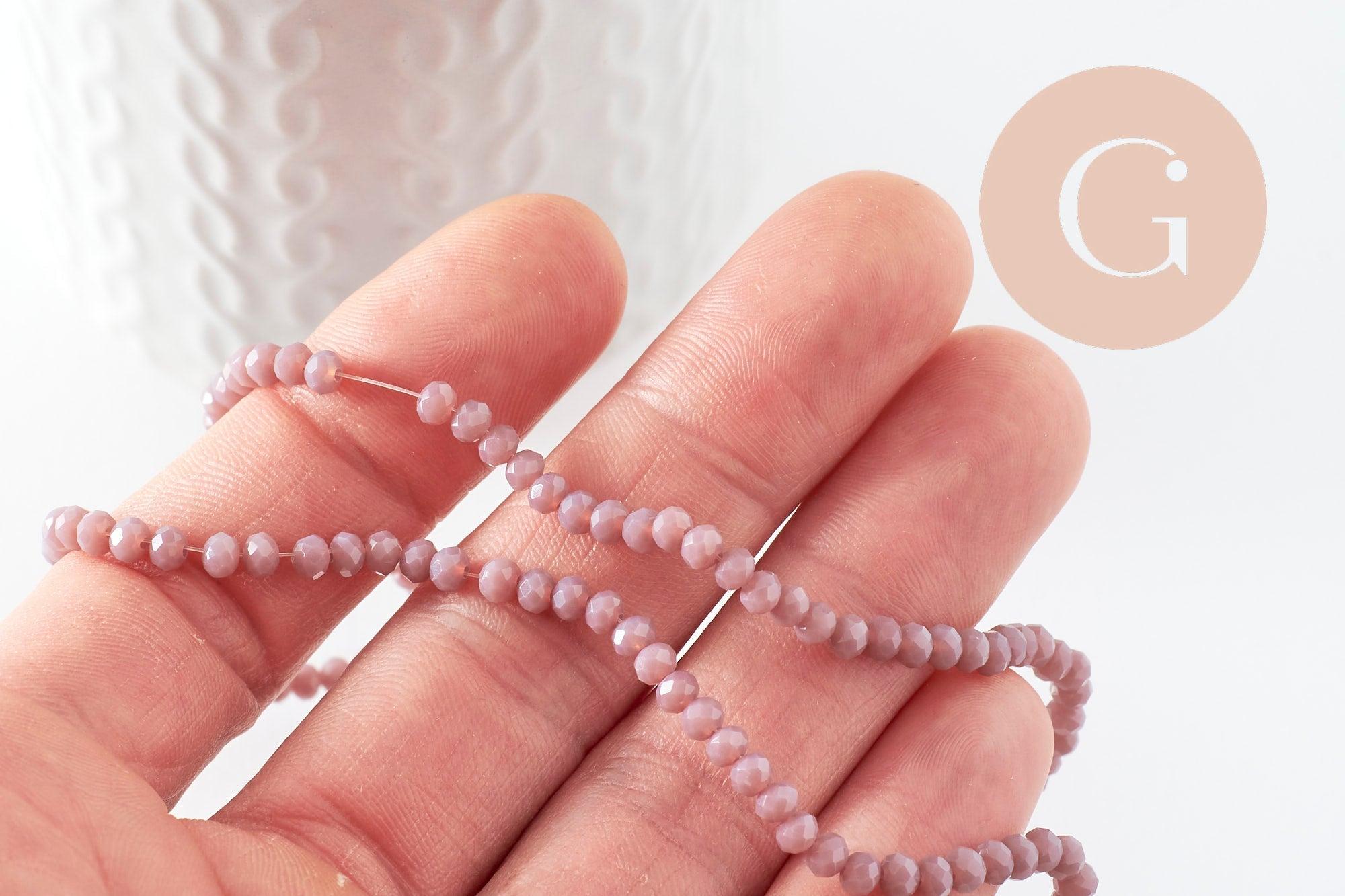 Cuentas de ábaco facetadas de vidrio opaco de color violeta malva, rondelle de 3 x 2,5 mm, joyería de cristal, tira de 39 cm, x1 (G7449)