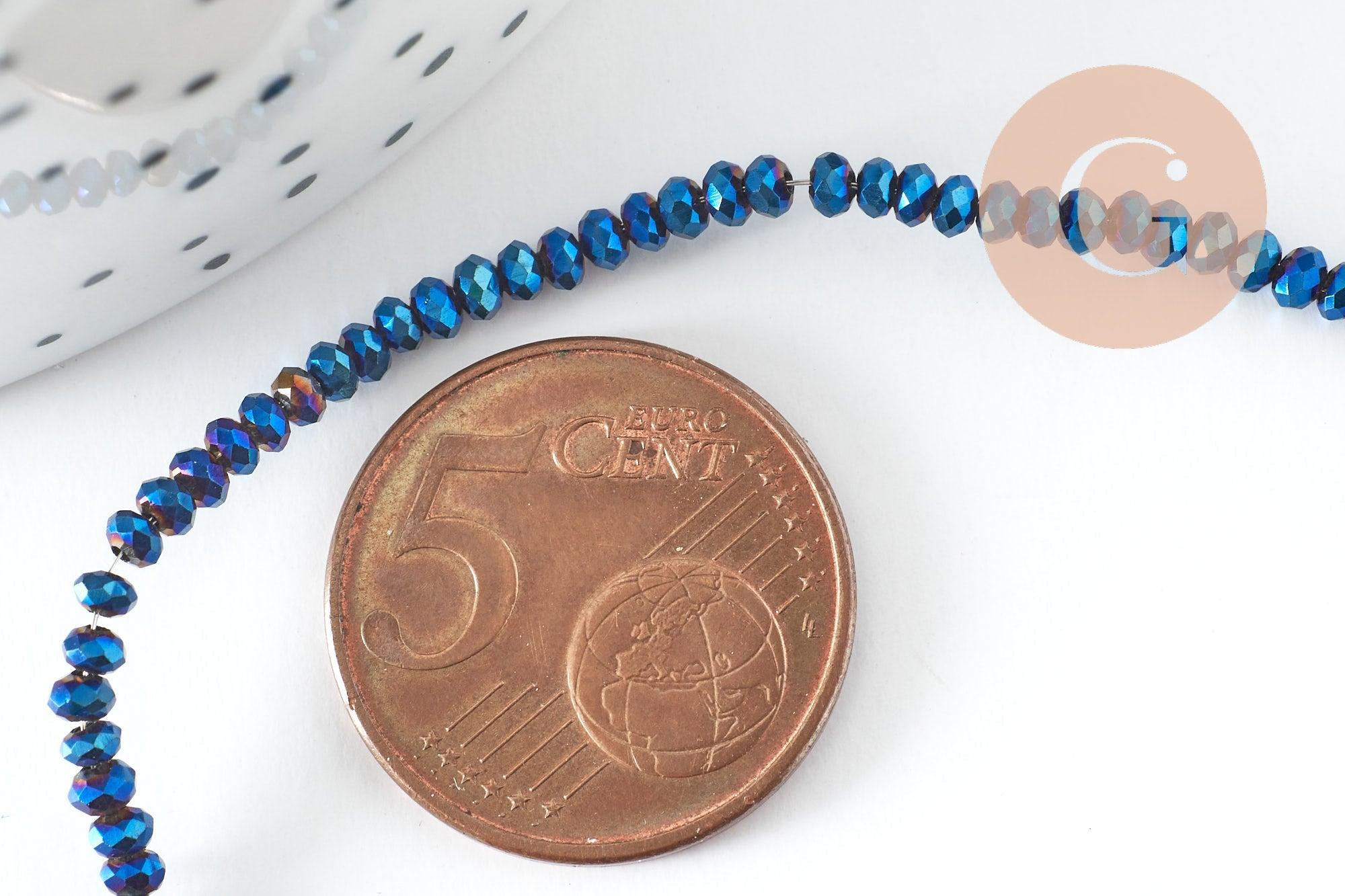 Cuentas de vidrio facetado opaco AB de color azul oscuro, 2,5 x 1,5 mm, para bisutería, bisutería DIY, 1 tira de 33 cm (G8255)