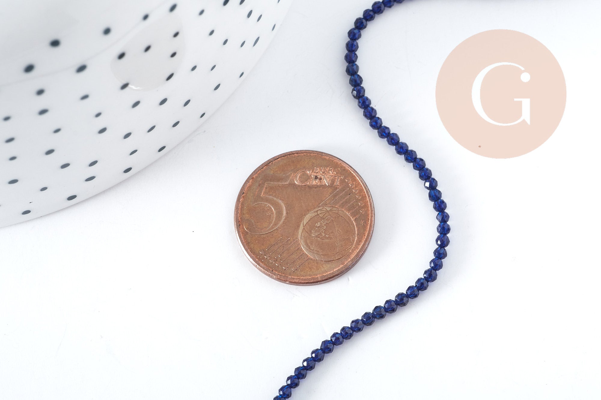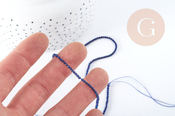 Cuentas redondas de cristal facetado azul 2 mm, cristal, alambre de 35 cm (G9057)