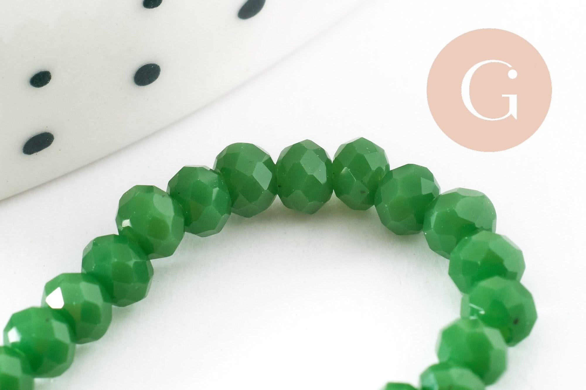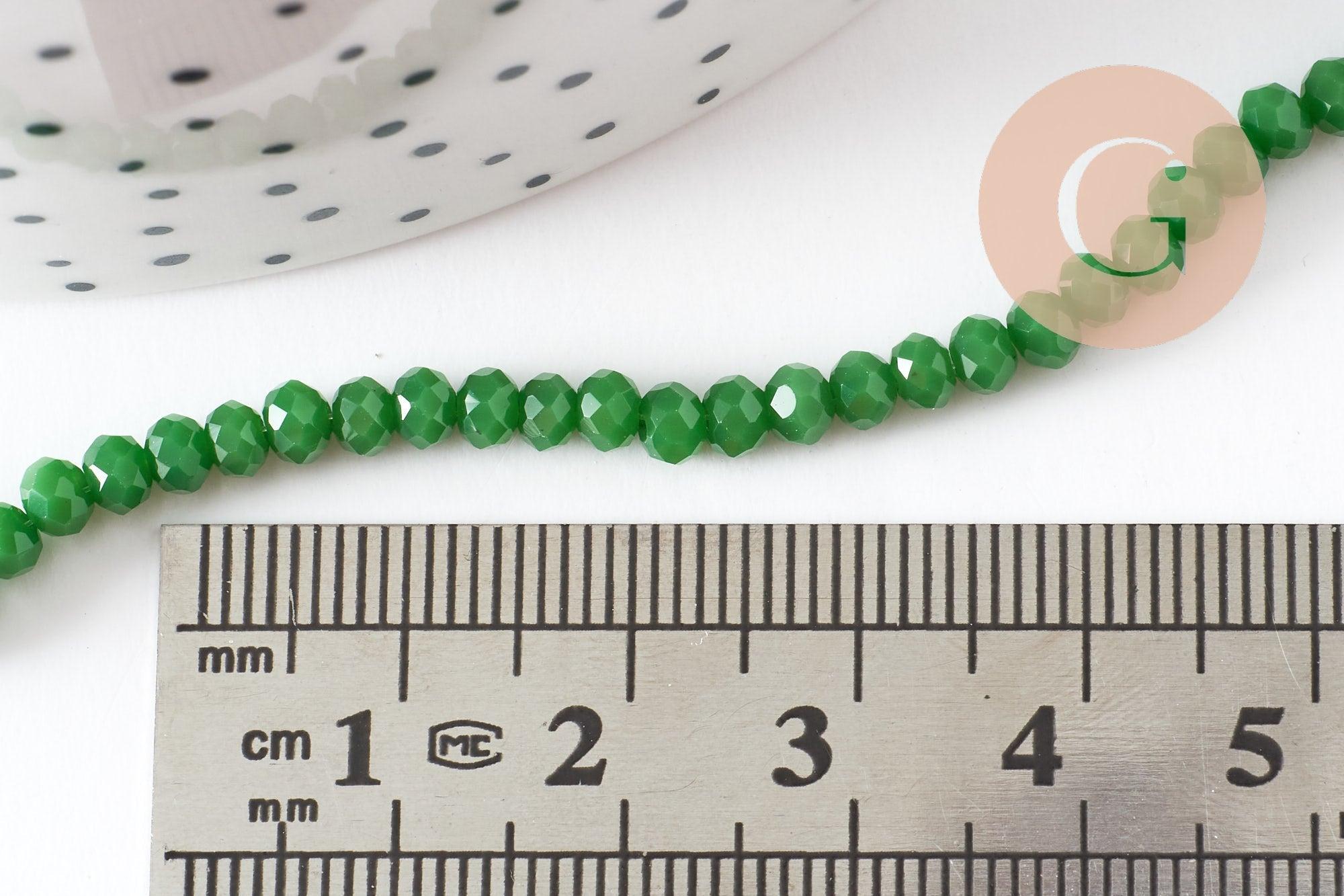 Cuentas de peonza verde esmeralda, cuentas de joyería, suministro creativo, cuentas de vidrio facetado, creación de joyas, alambre de 36 cm, 3 mm