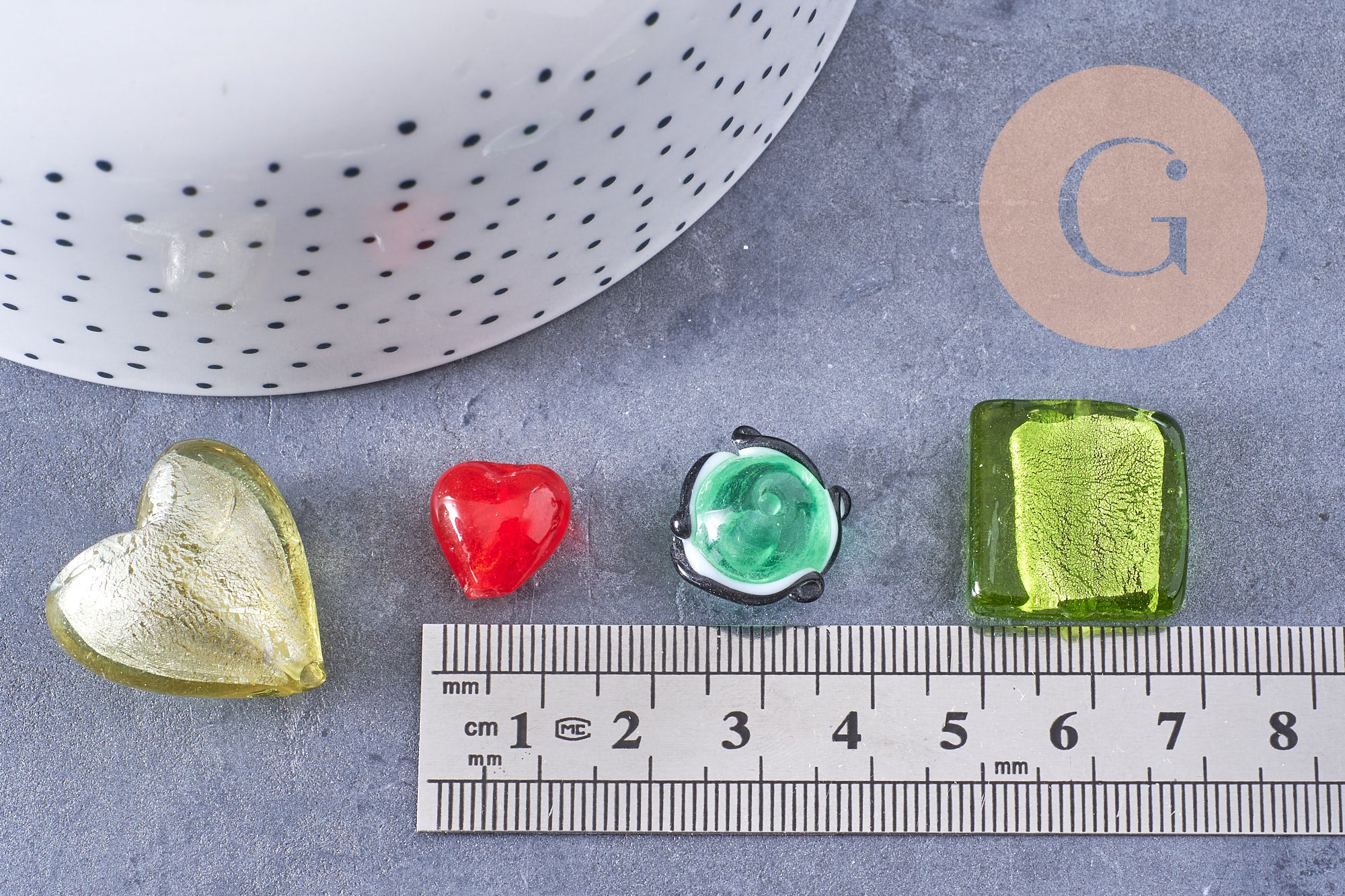 Cuentas de cristal de Murano en múltiples formas y colores, cuentas de hoja de plata, x10 (G0741)