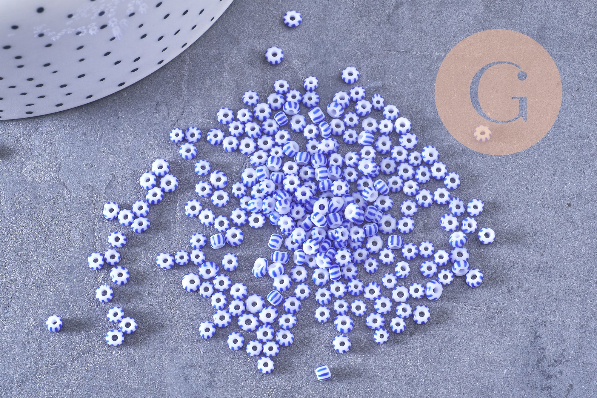 Dale un toque gráfico y colorido a tus creaciones con estas grandes cuentas de semillas con rayas azules y blancas . Su generoso tamaño y diseño único las hacen ideales para tus proyectos de bisutería o manualidades.