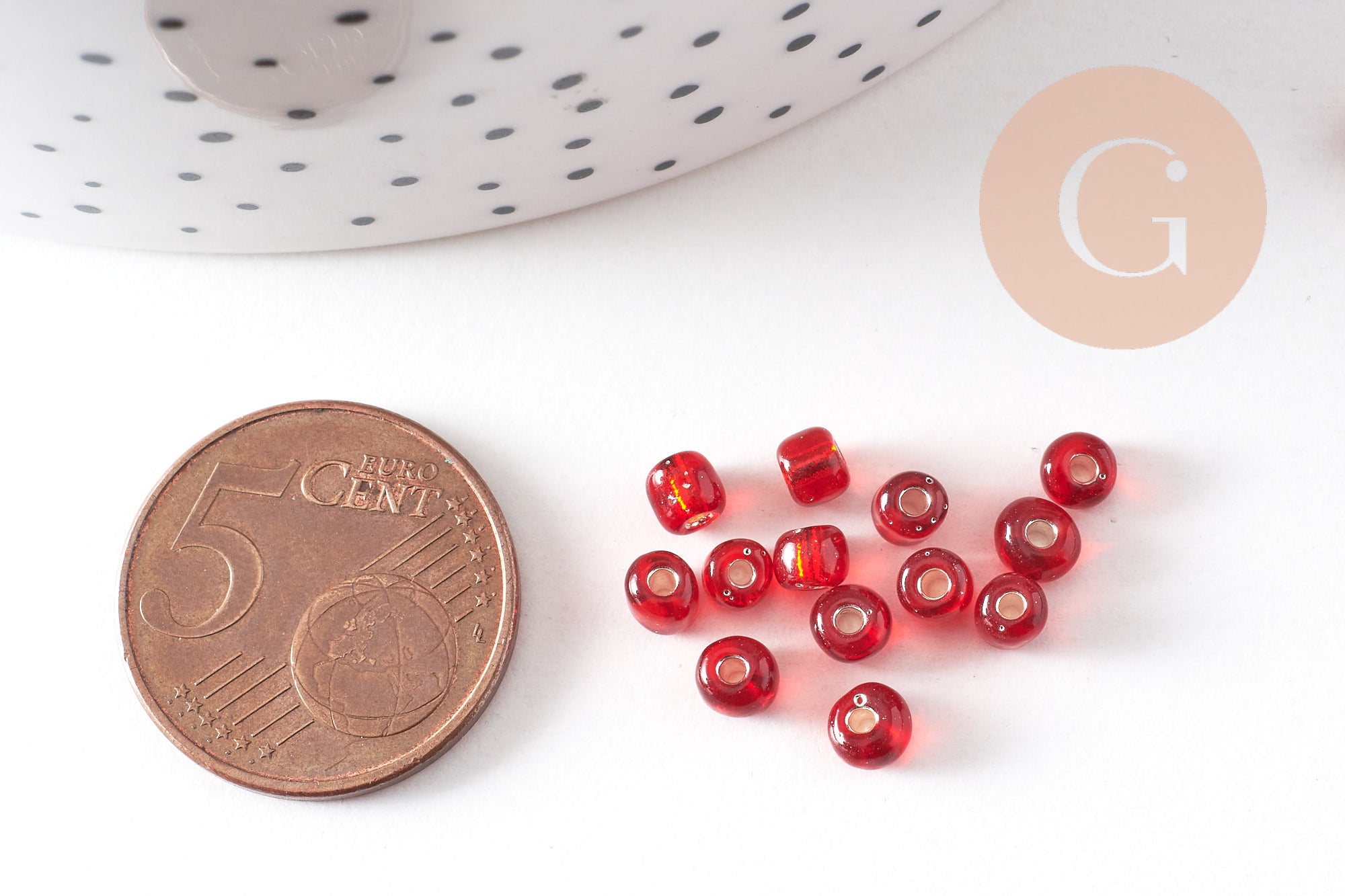 Para todas tus creaciones de bisutería, elige estas cuentas de semillas rojas transparentes con corazón plateado , un clásico revisitado que aporta brillo y profundidad a tus composiciones.