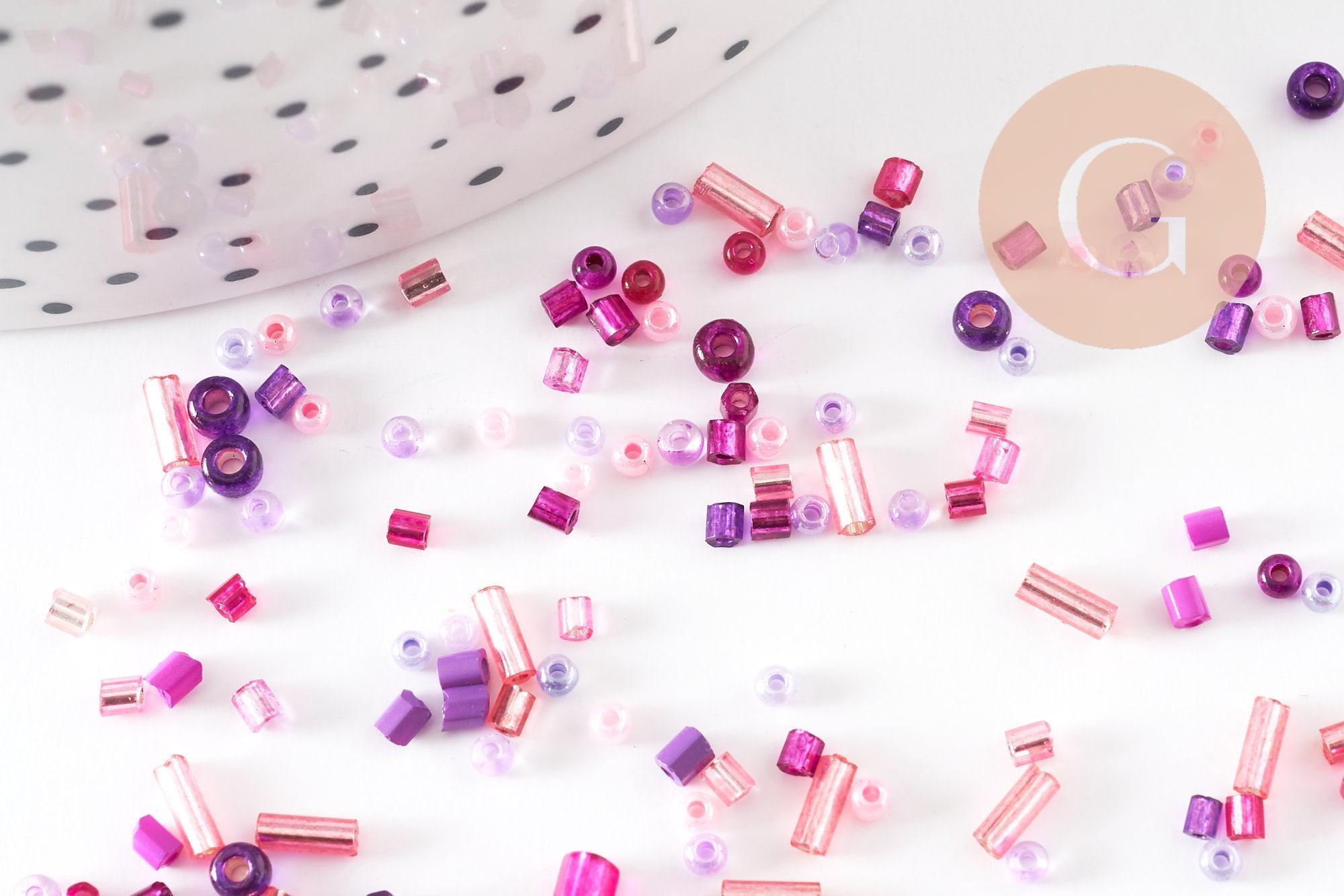 Mélange perles rocaille camaïeu rose violet , perles pour création bijoux x 10gr (G9510)