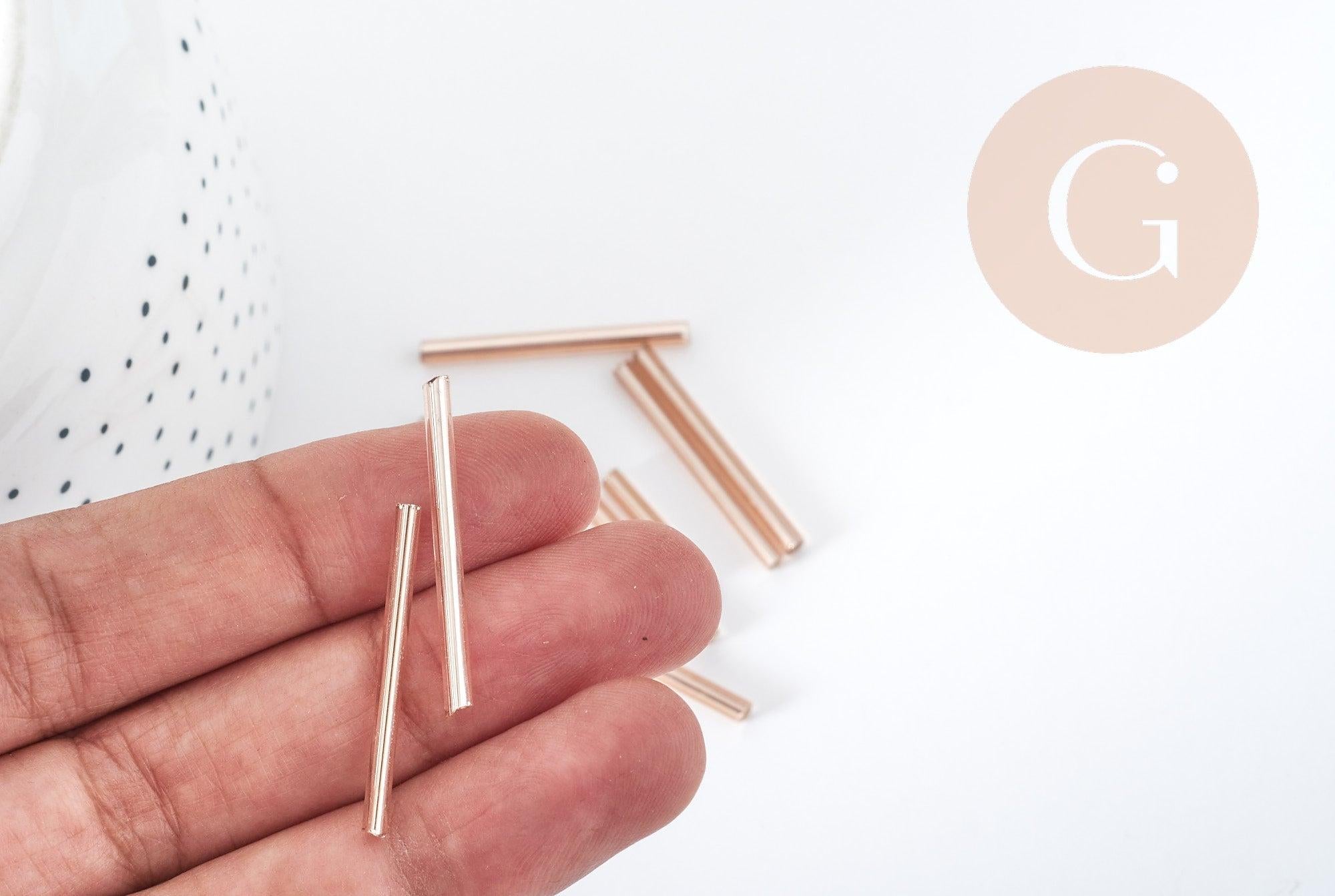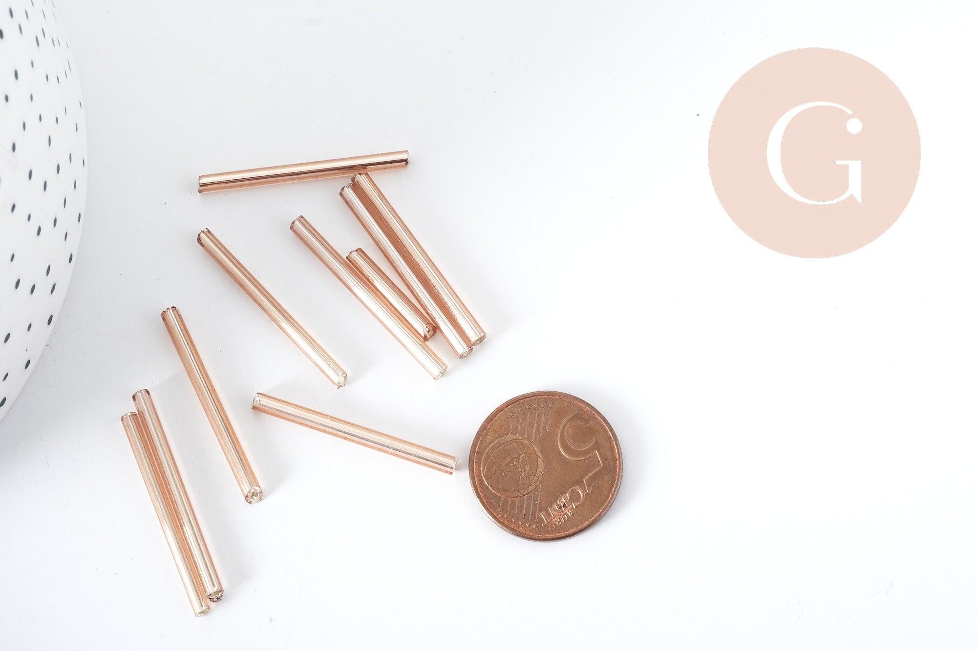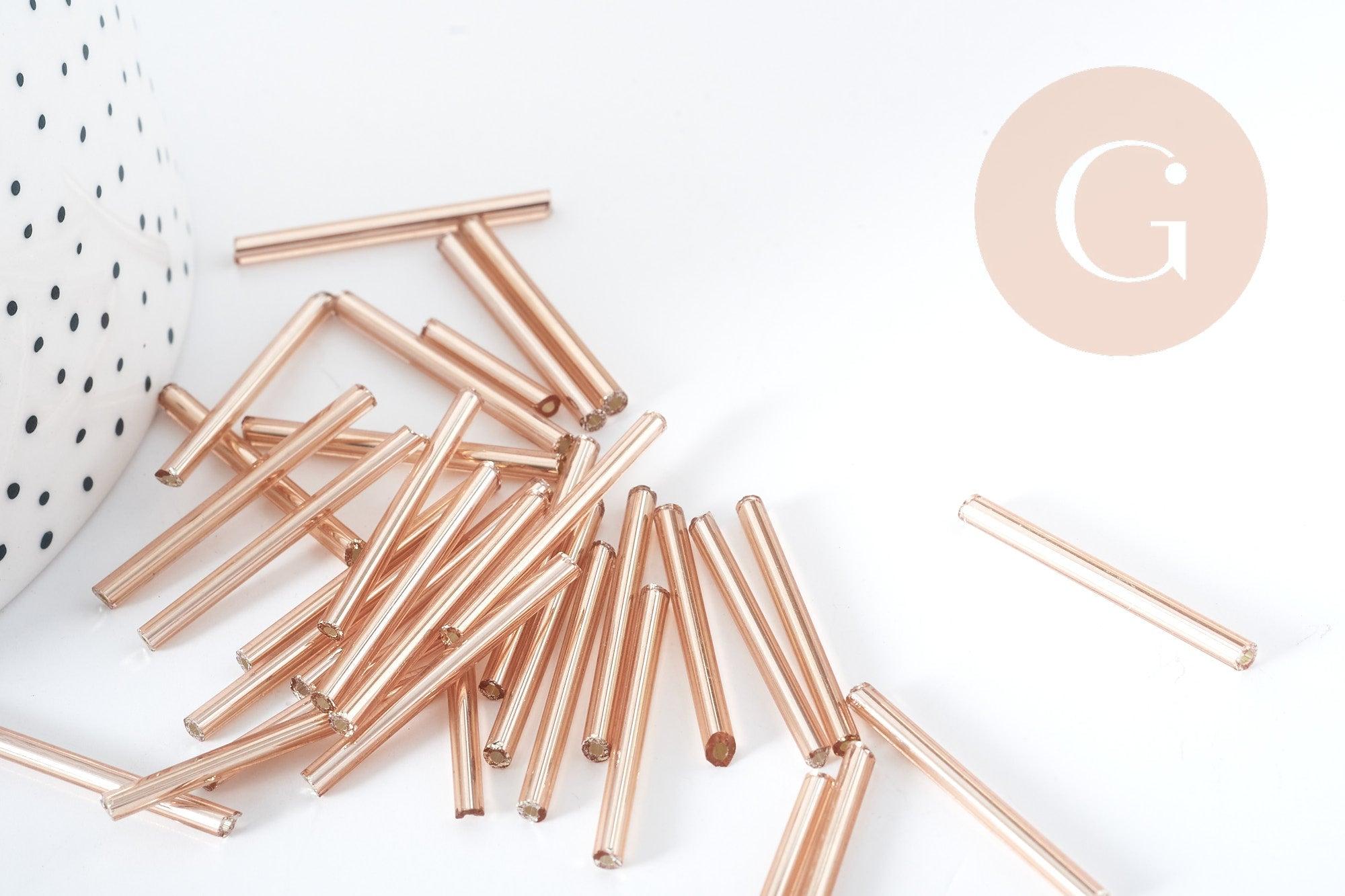 Cuentas de semillas de tubo rosa metálico 30x2.5mm, fabricación de bisutería, x 10gr G8988