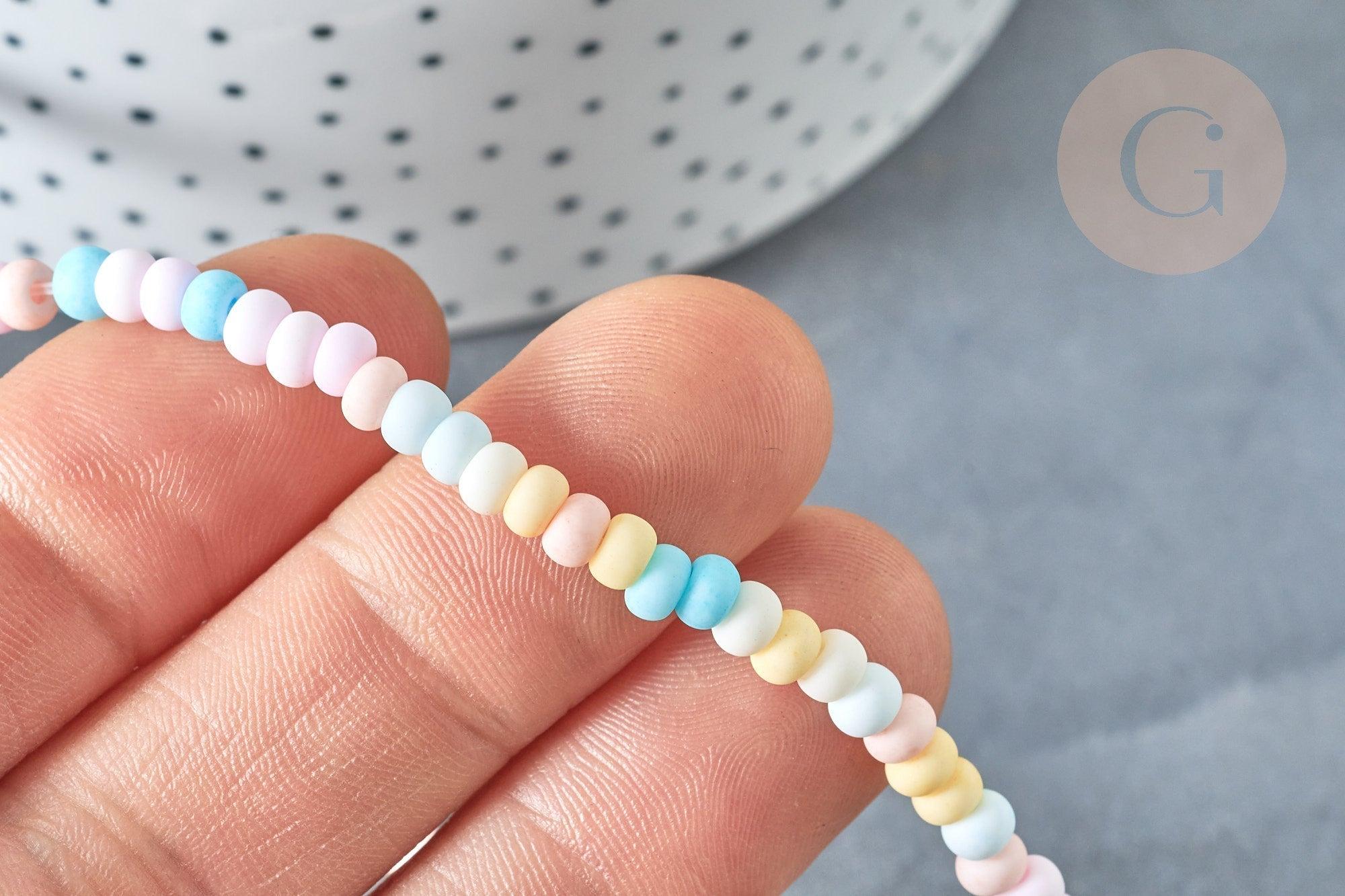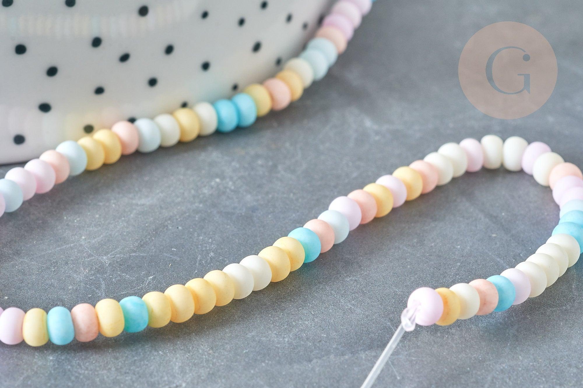 Cuentas de porcelana ábaco multicolor pastel 4x3mm, creación de joyería de cerámica, x1 hilo de 38cm G7806