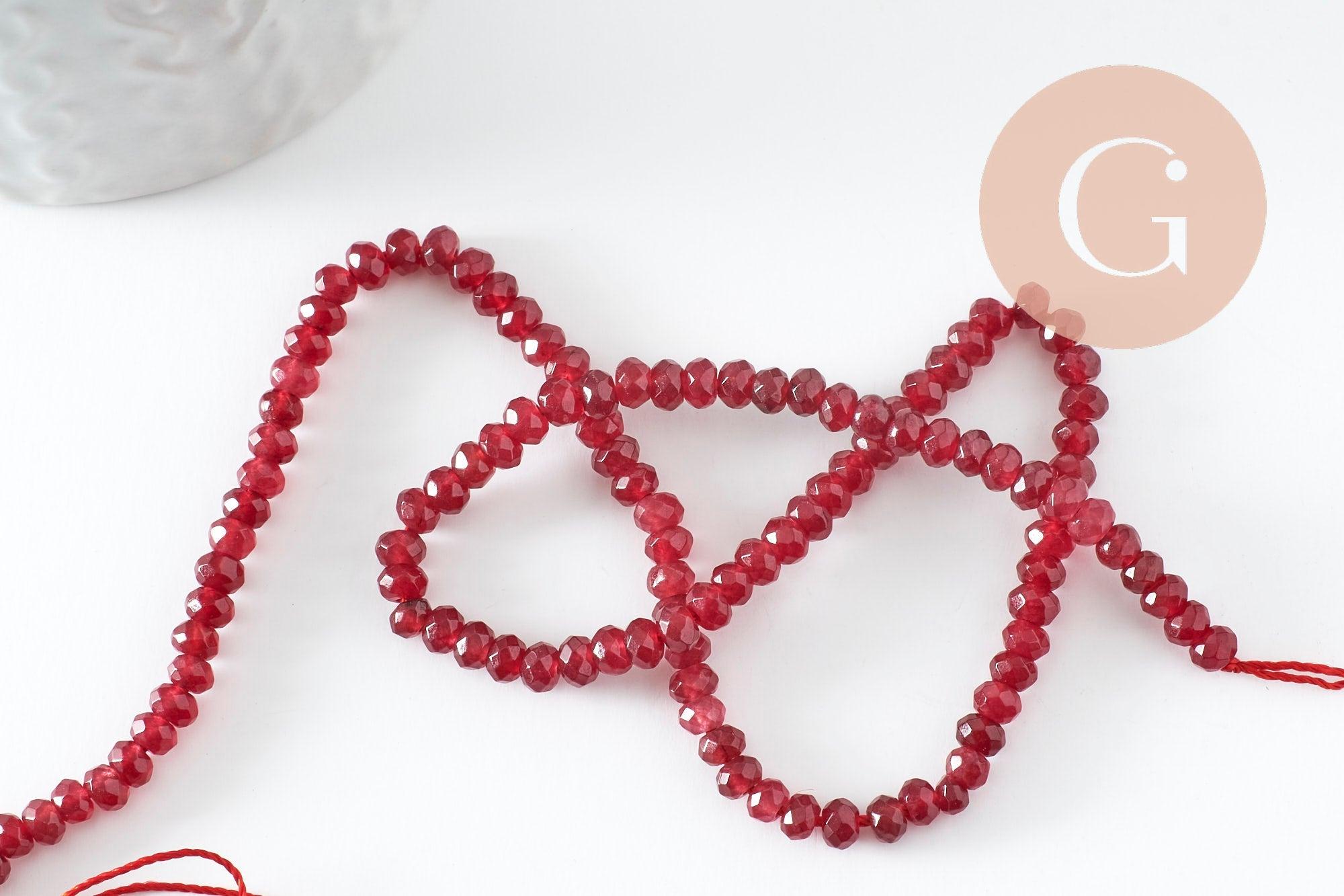 Cuenta de ábaco de jade rojo, piedra natural, cuenta facetada, jade, 4x2 mm, hilo de 36 cm, x1 (G1801)