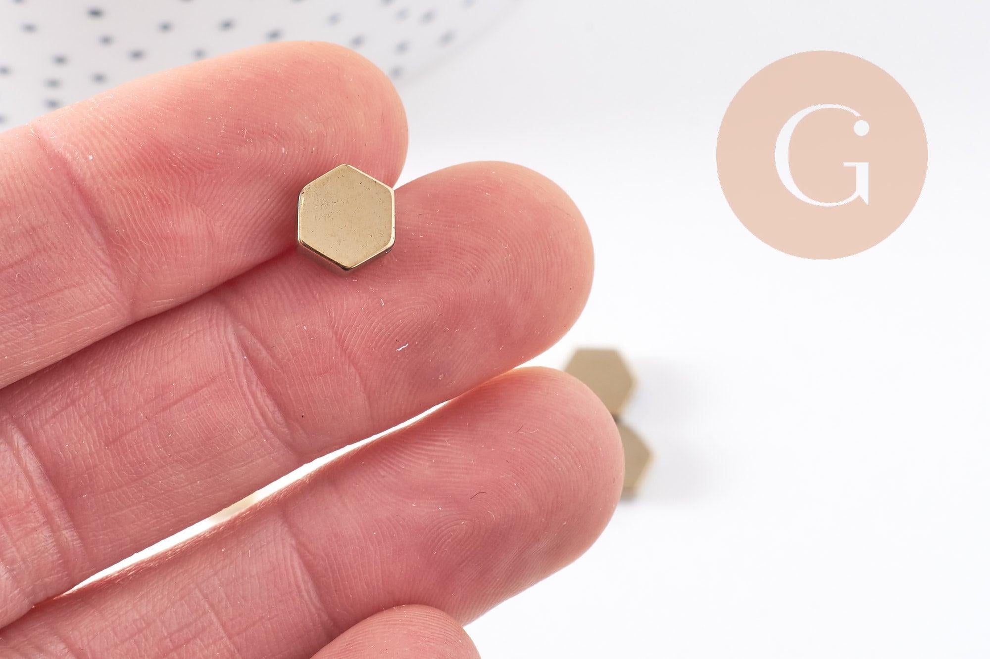 Juego de 10 cuentas hexagonales de hematita dorada no magnéticas de 9 mm.