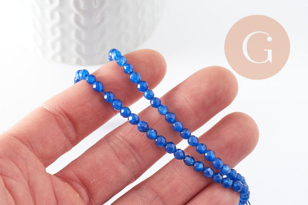 Perla de jade azul oscuro, jade, piedra natural, piedra, perla facetada, jade, 4 mm, hilo de 36 cm, x1 (G0605)