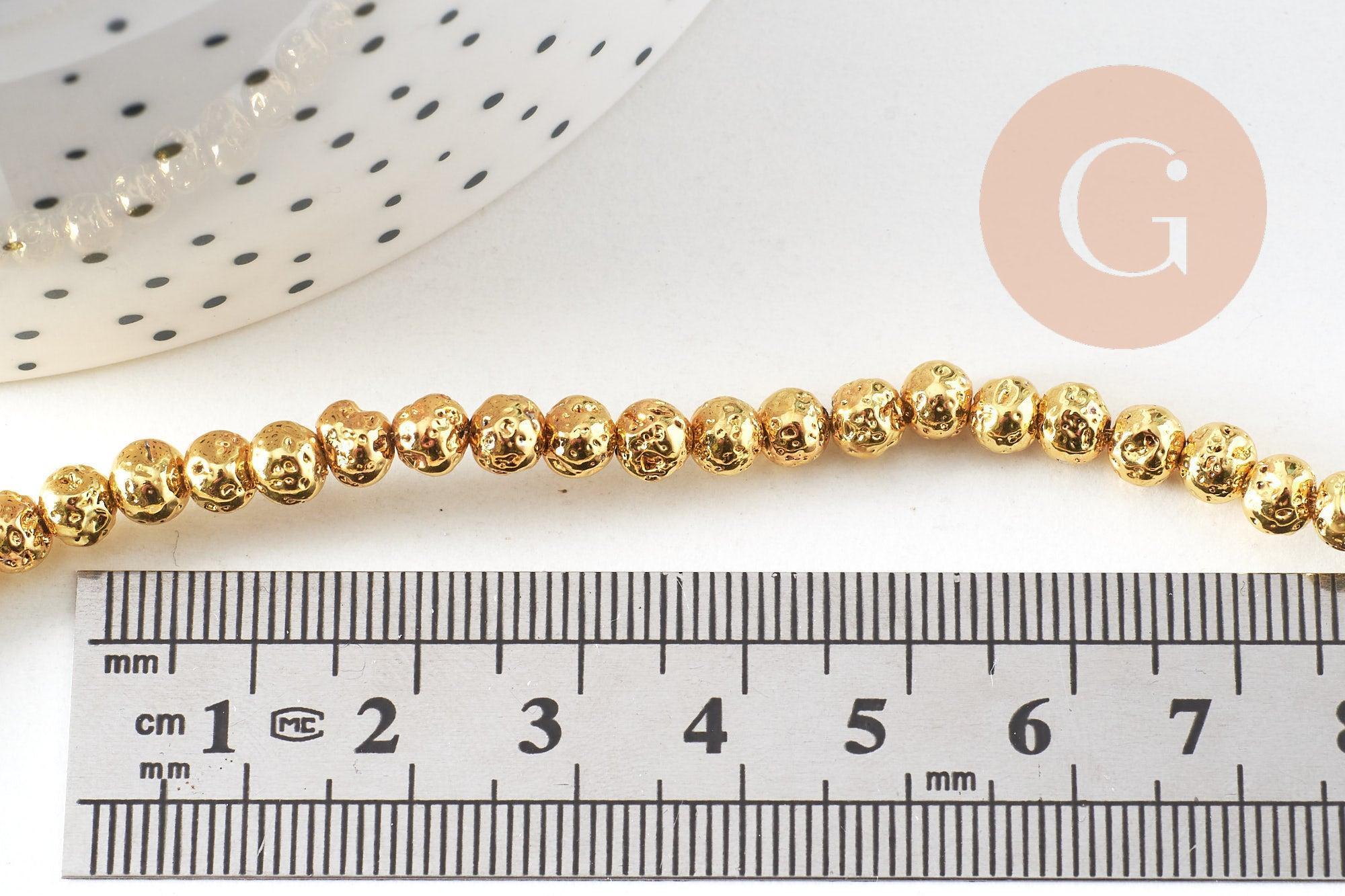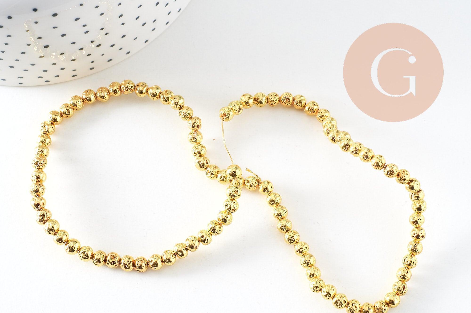 cuenta redonda de lava dorada, lava natural, lava blanca, piedra natural, creación de joyas, alambre de 38 cm, 4 mm