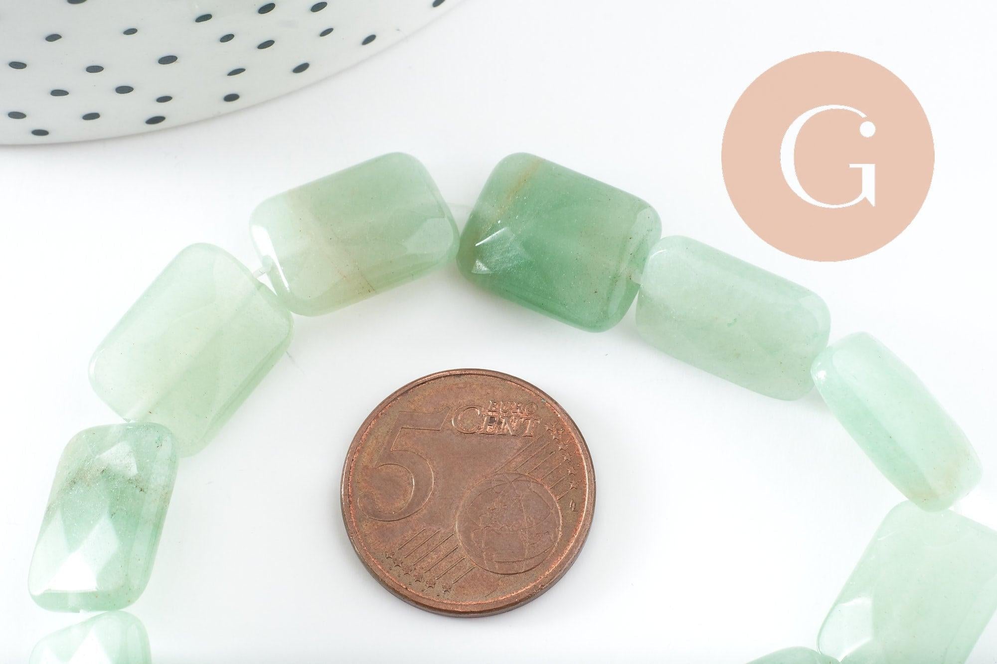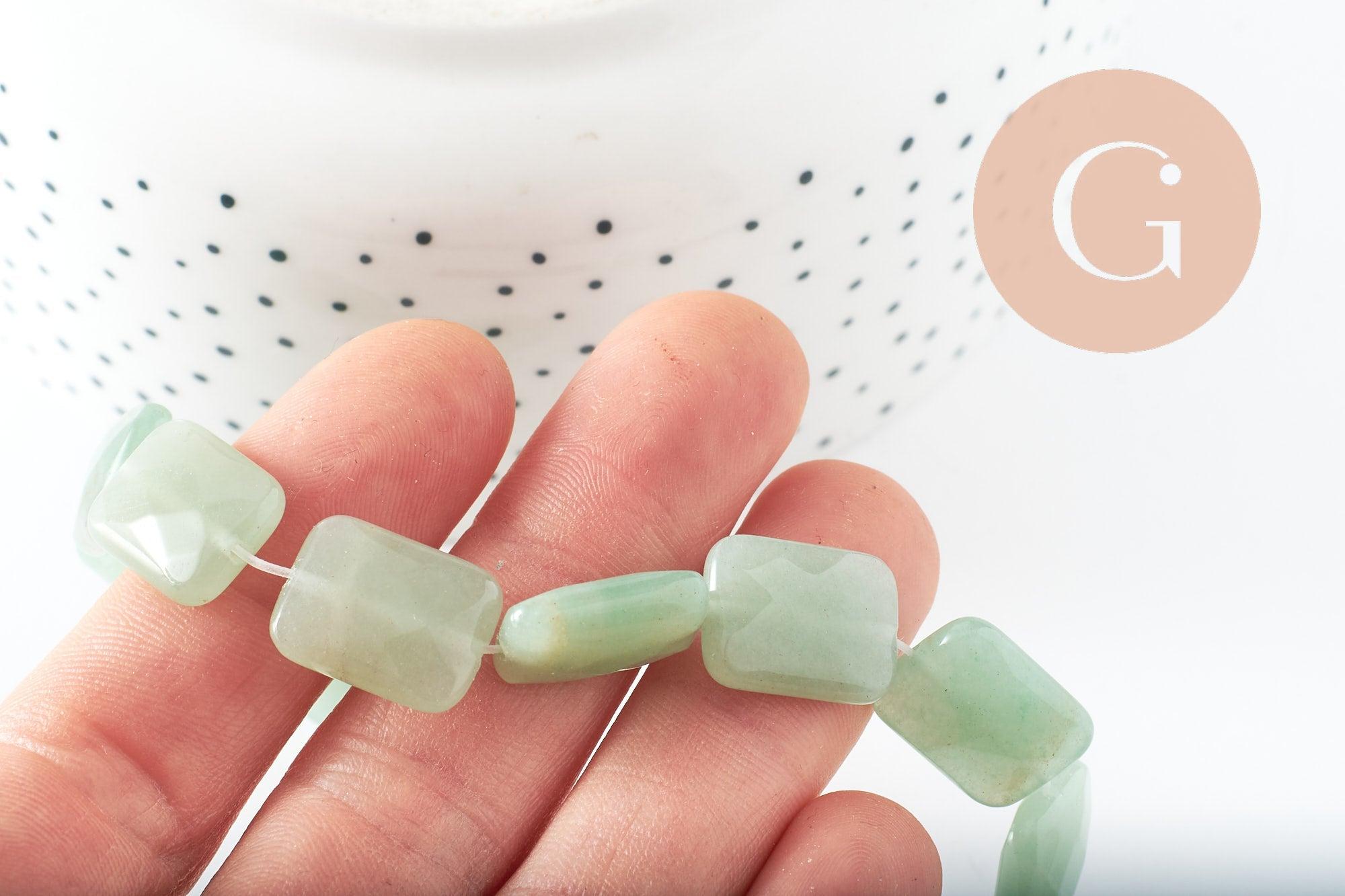 Añade un toque de frescura y elegancia a tus creaciones con estas cuentas rectangulares facetadas de aventurina teñida de verde .