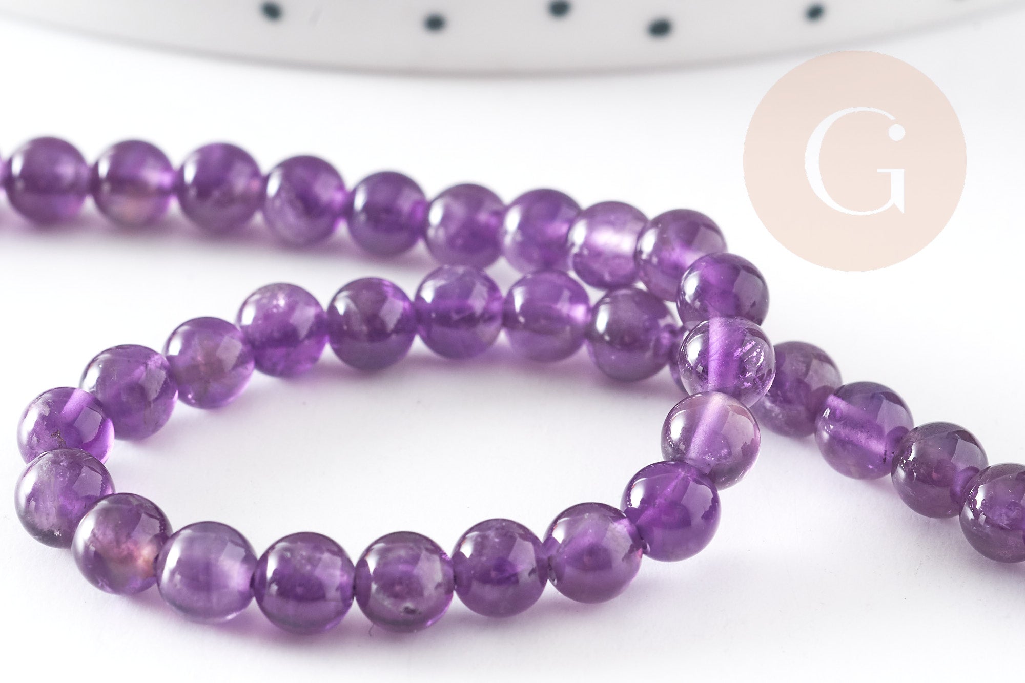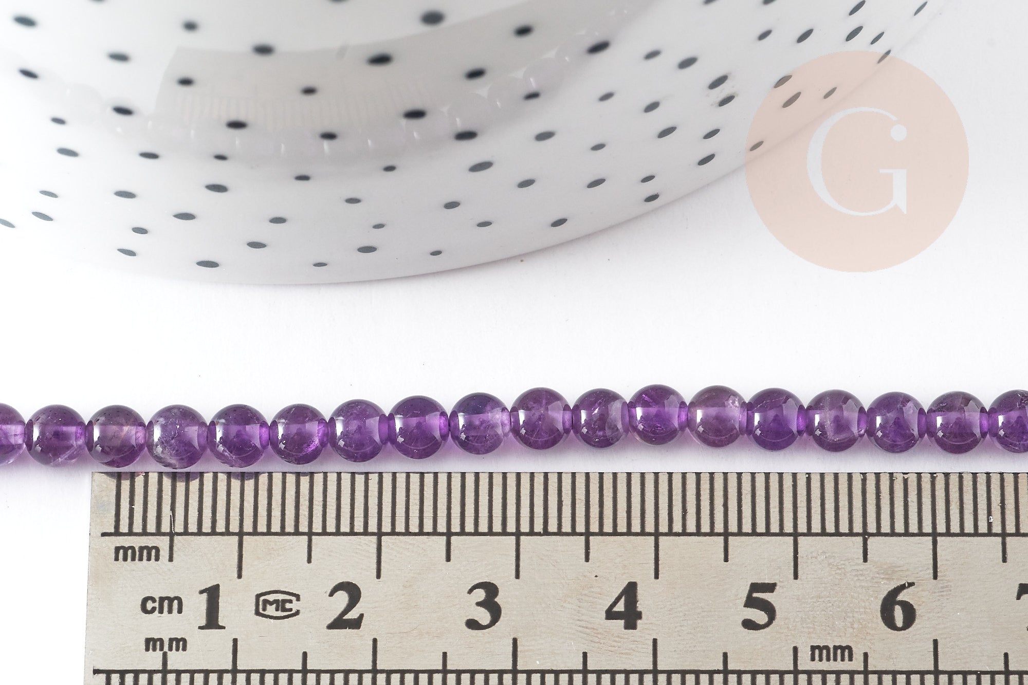 Elija esta tira de cuentas redondas de amatista morada natural de 4 mm , perfectas para hacer joyas con piedras naturales.