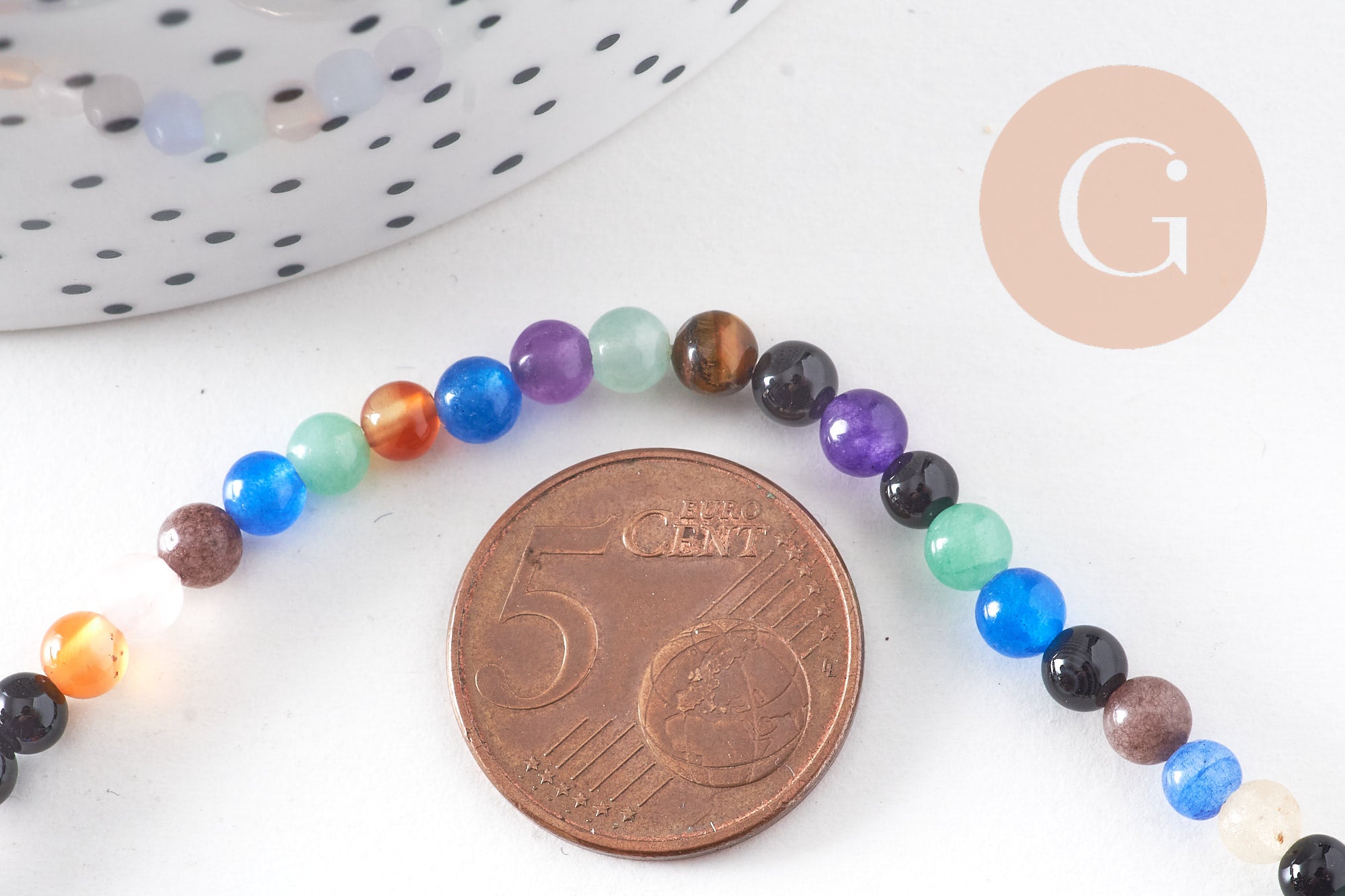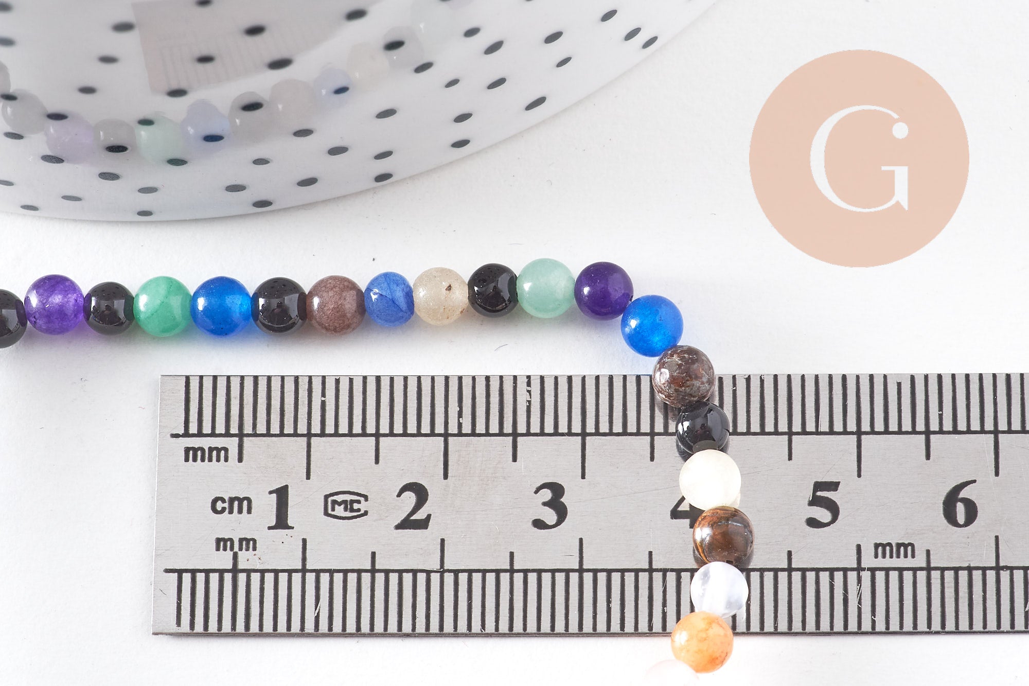 Cuentas de jade redondas multicolores, cuentas de jade, piedra natural, jade natural, cuentas de piedra, cuentas facetadas, jade, 4 mm, tira de 95 cuentas