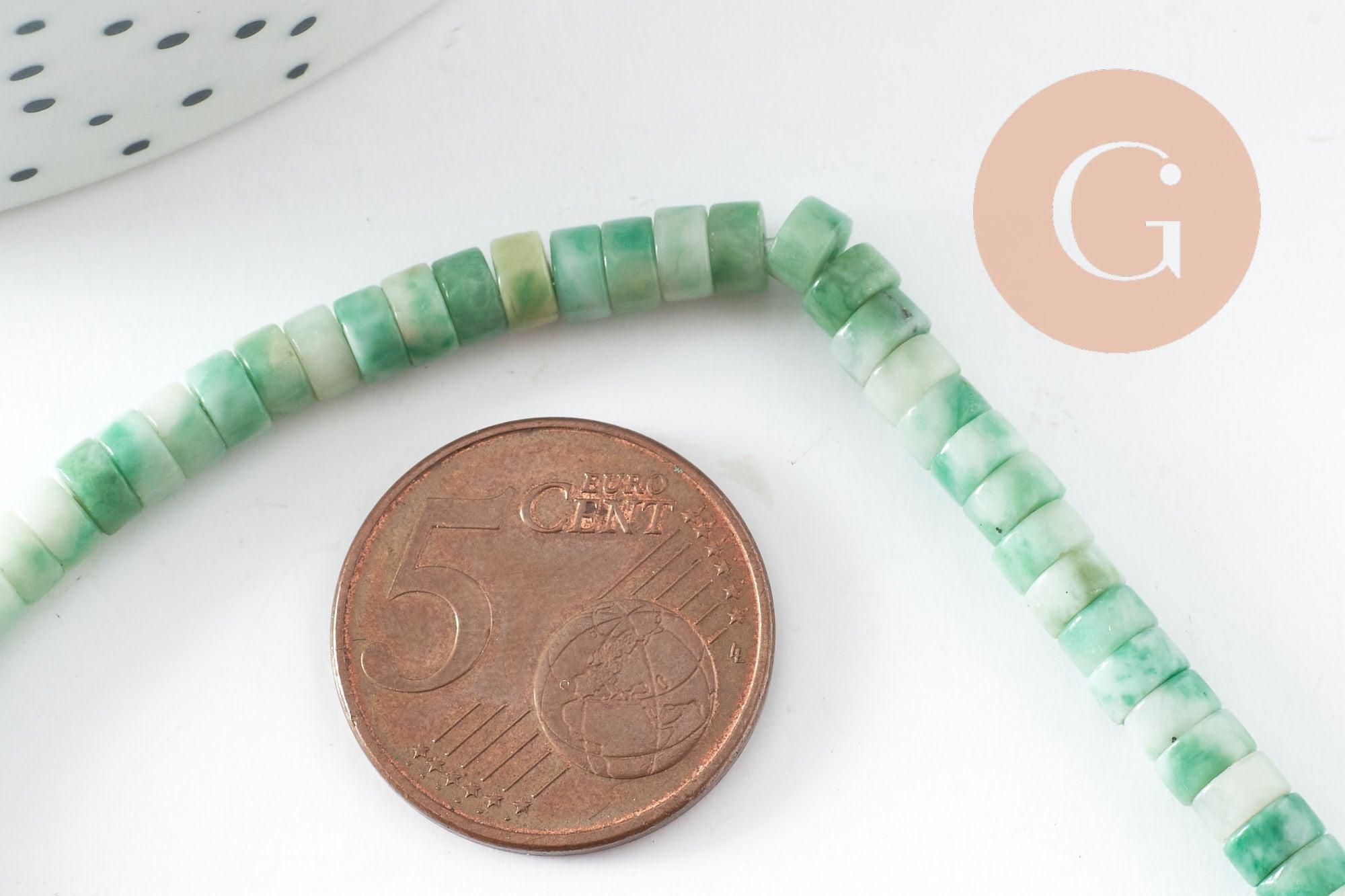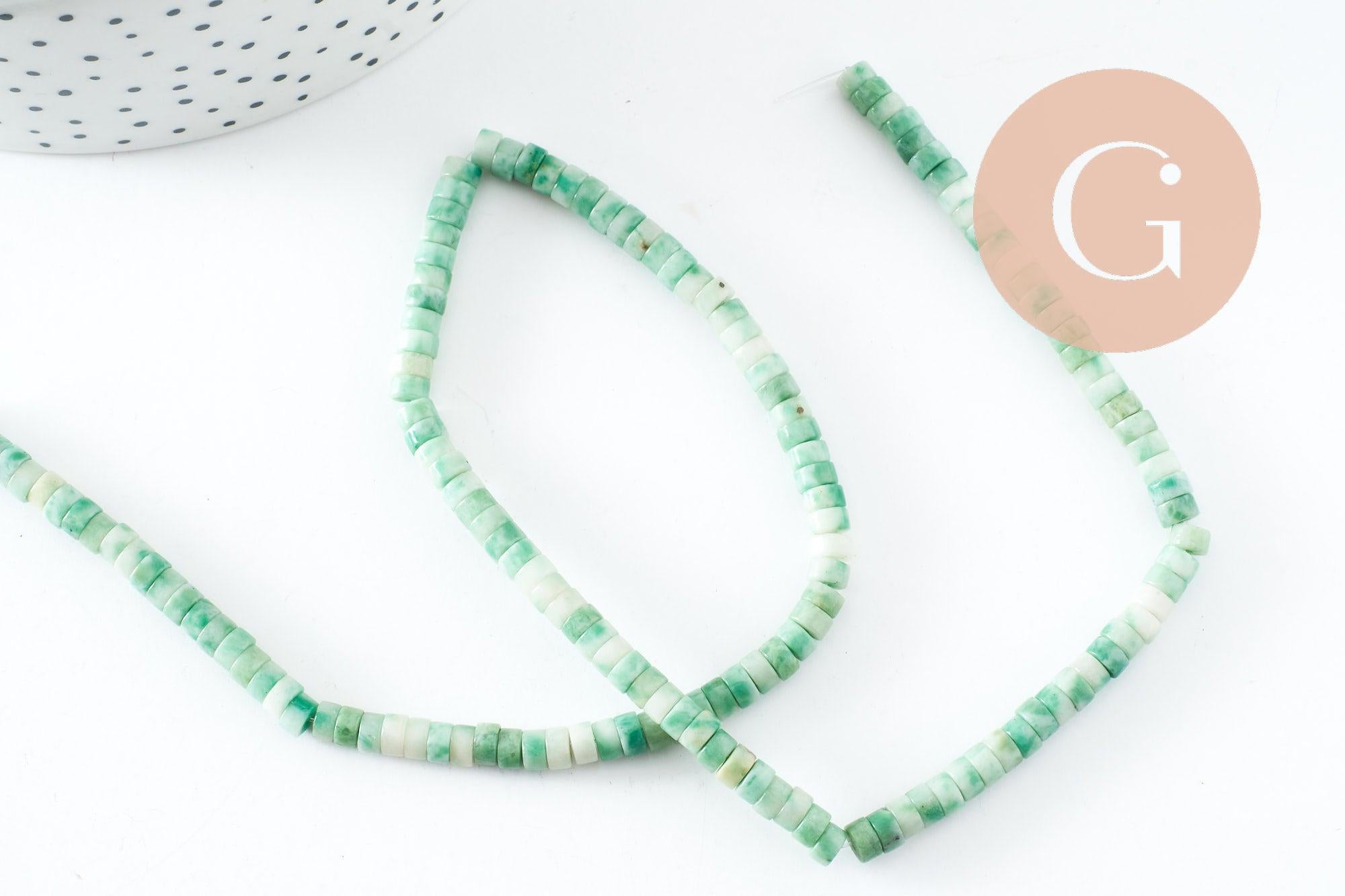 Déjate seducir por estas cuentas heishi de jade verde natural , perfectas para añadir un toque mineral, suave y natural a tus creaciones DIY. Su forma plana y regular te permite crear joyas de estilo bohemio, étnico o zen.