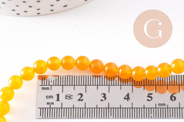 Dale un toque de sol a tus creaciones con estas hermosas cuentas redondas de jade de color amarillo anaranjado . Su cálido tono evoca la luz dorada del atardecer y combina a la perfección con tonos dorados, cobres o incluso pastel.