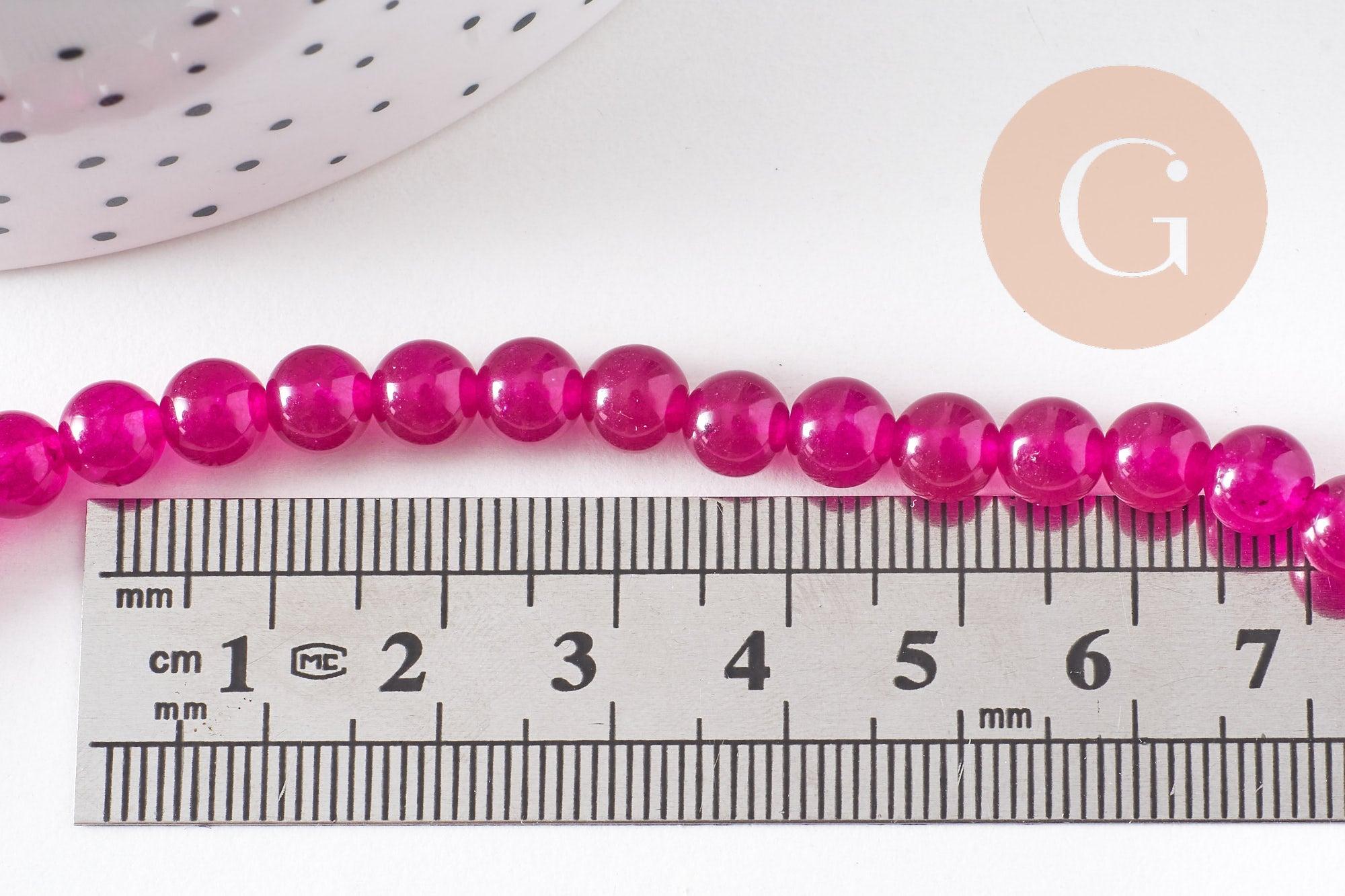 Añade un toque vibrante y audaz a tus creaciones con estas cuentas redondas de jade natural teñidas de rosa fucsia .