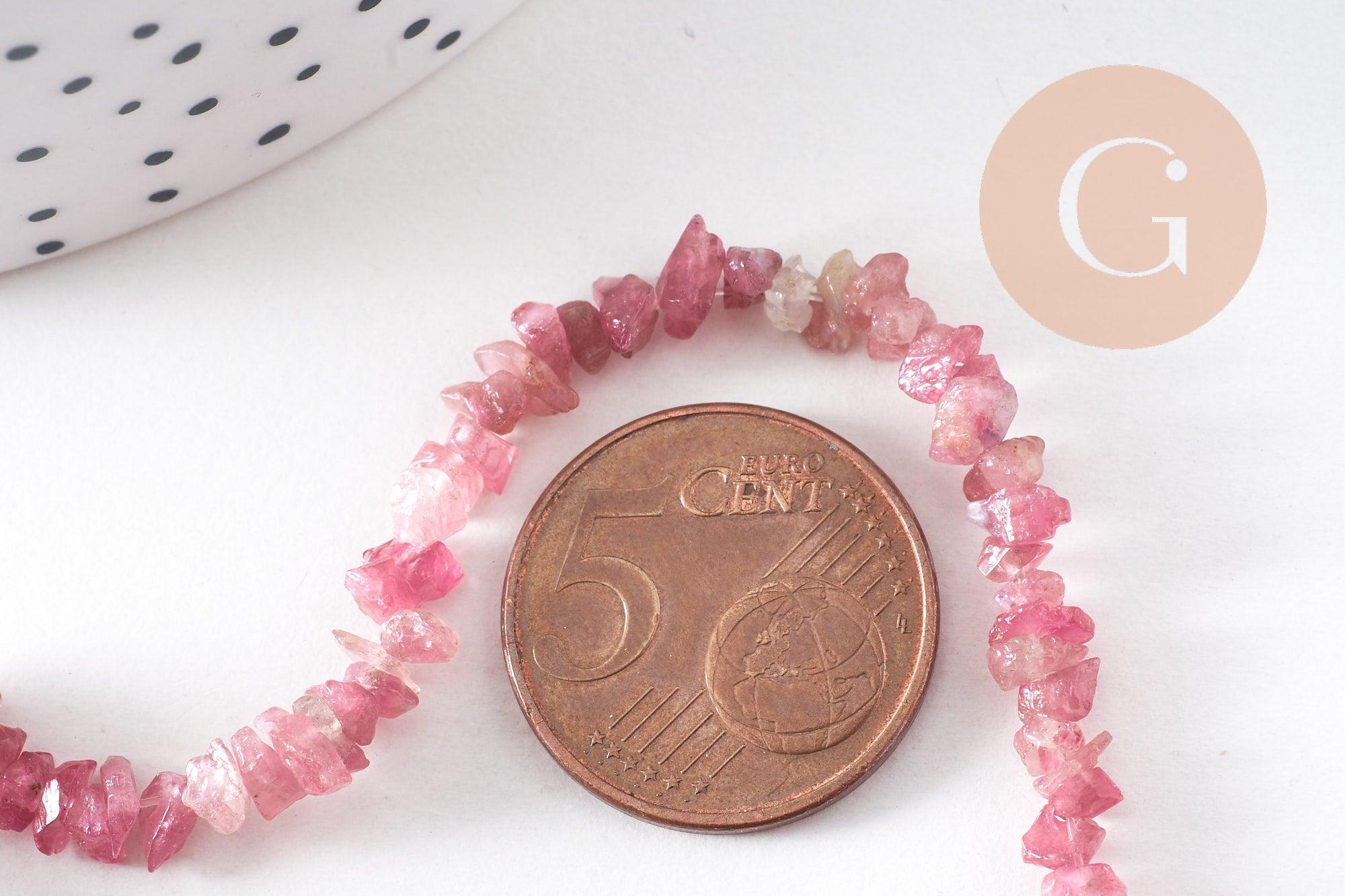 Estas cuentas de turmalina natural presentan hermosos tonos de color rosa fucsia. Ideales para creaciones modernas y minerales, añaden un toque vibrante de color a tus joyas. Cada perla es única con una forma irregular, que aporta un encanto crudo y natural a tus creaciones.