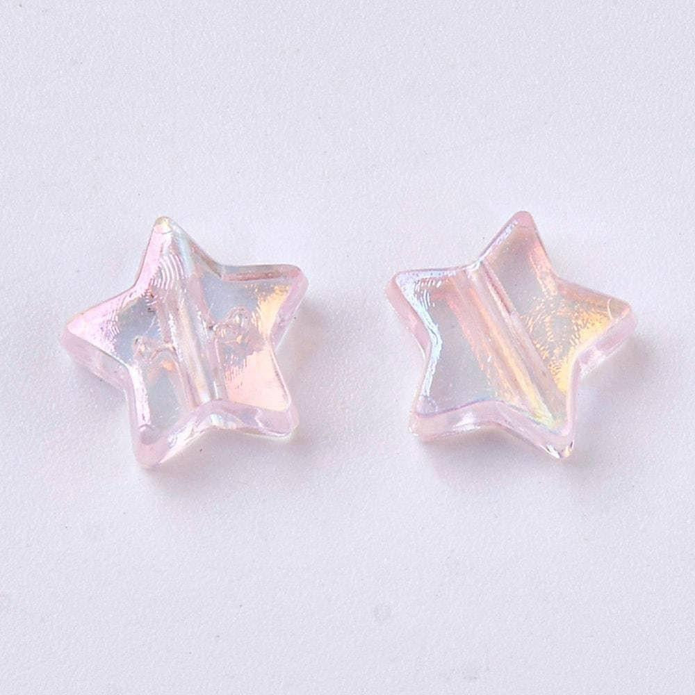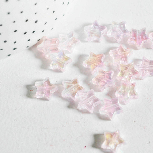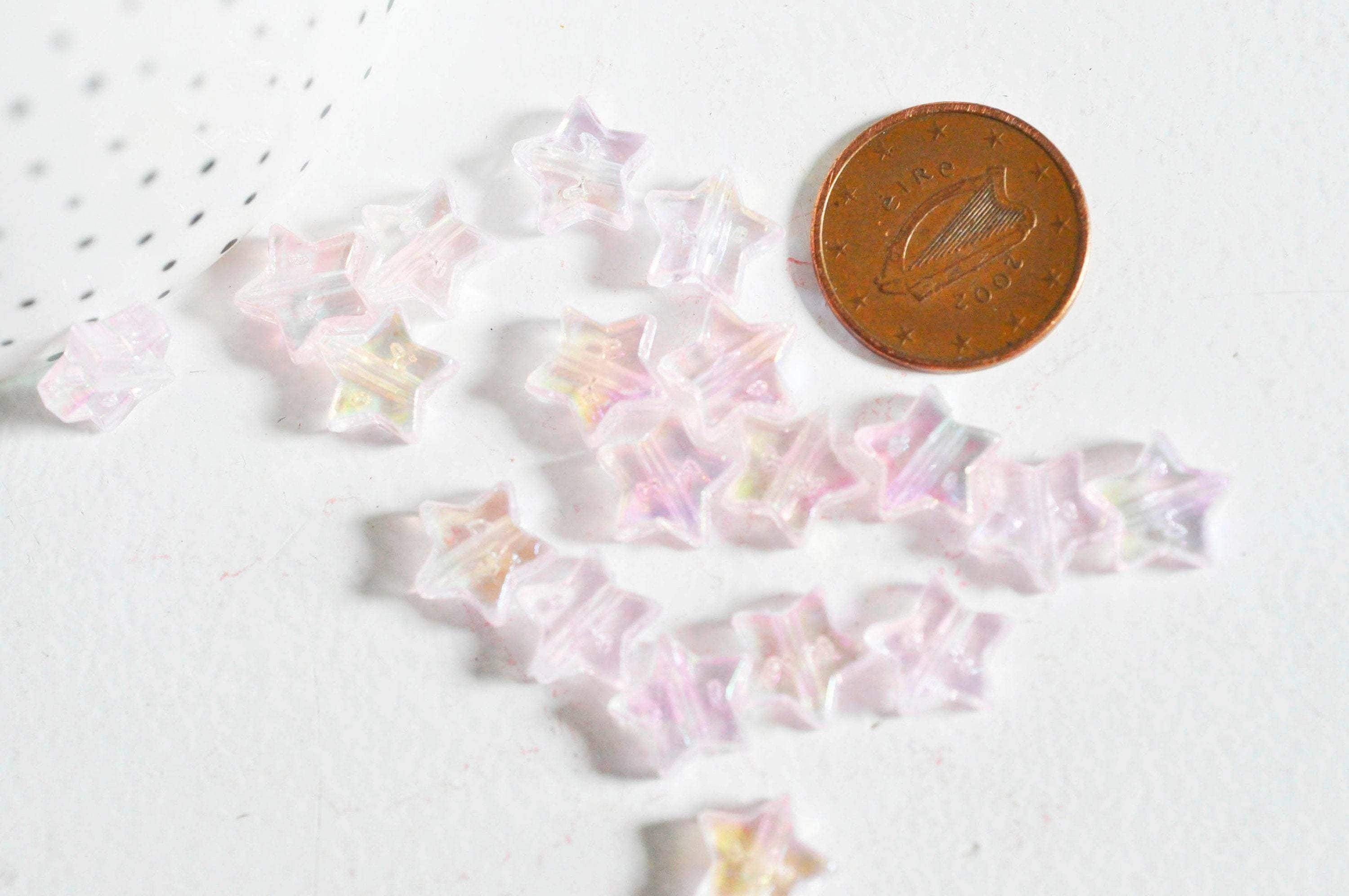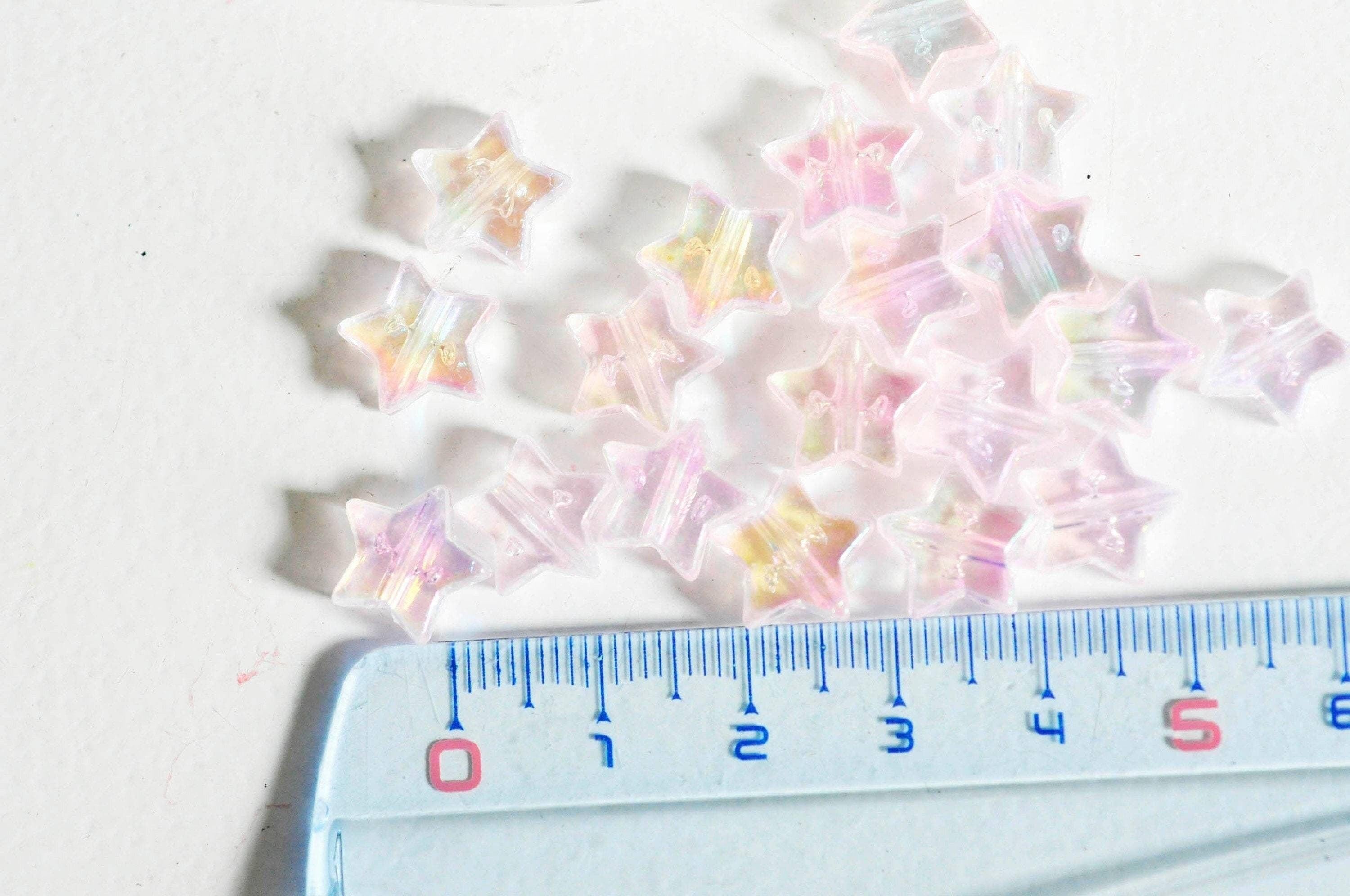 Cuenta de estrella de plástico rosa iridiscente, colgante acrílico transparente, cuenta, fabricación de joyas de plástico de colores, 11 mm, x 30 (7,4 g) (G3493)