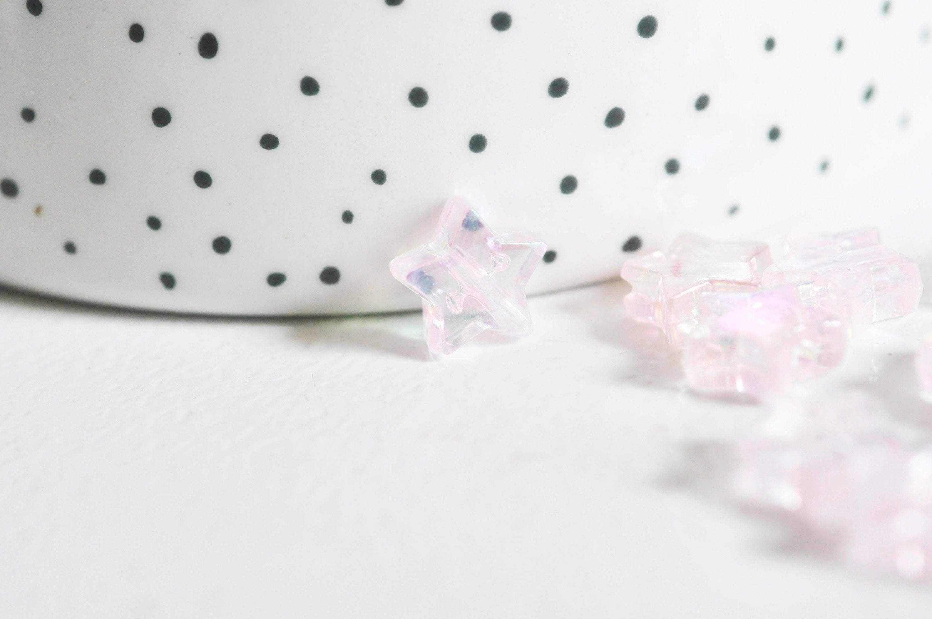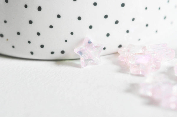 Déjate seducir por este juego de cuentas en forma de estrella de plástico rosa transparente, con reflejos iridiscentes.