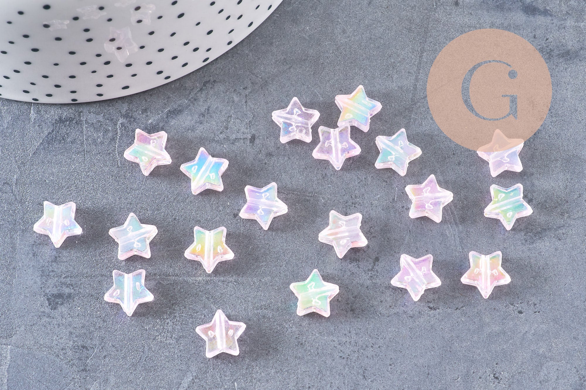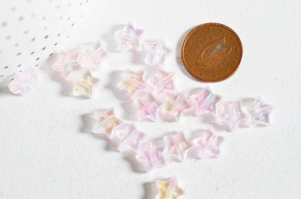 Perle étoile plastique rose irisé,pendentif acrylique transparent ,perle,création bijoux plastique coloré, 11mm, x 30 (7.4gr) (G3493)