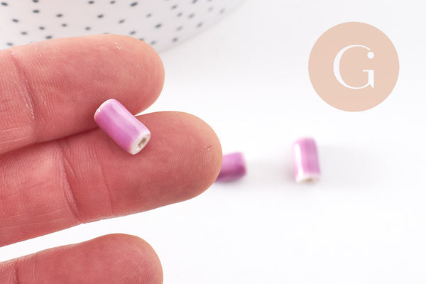 Perla de porcelana morada, suministros creativos, perla de cerámica, porcelana de Parma, perla de tubo, creación de joyas, juego de 5, 10 mm