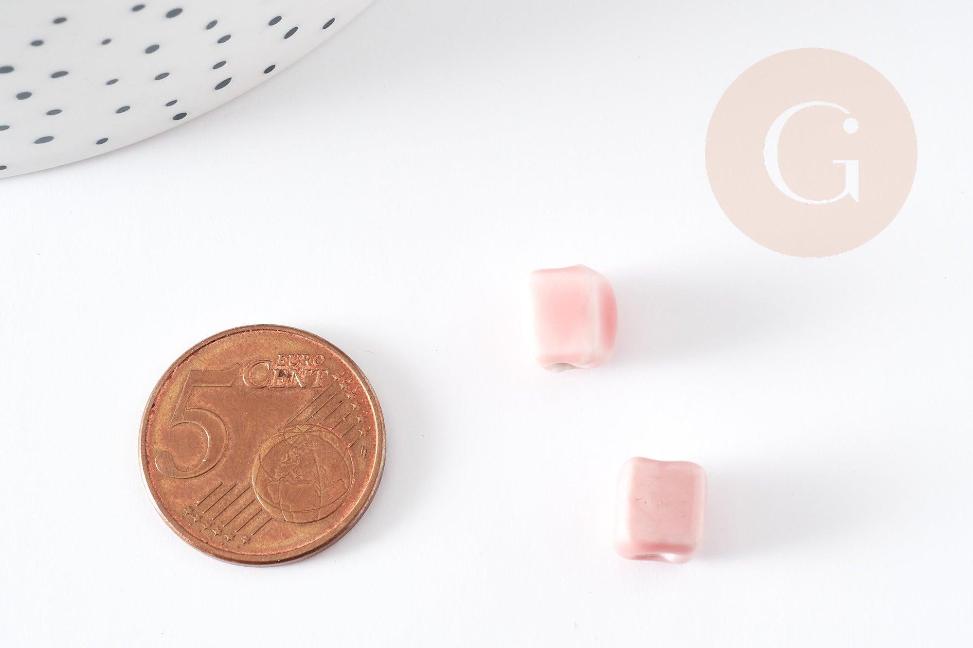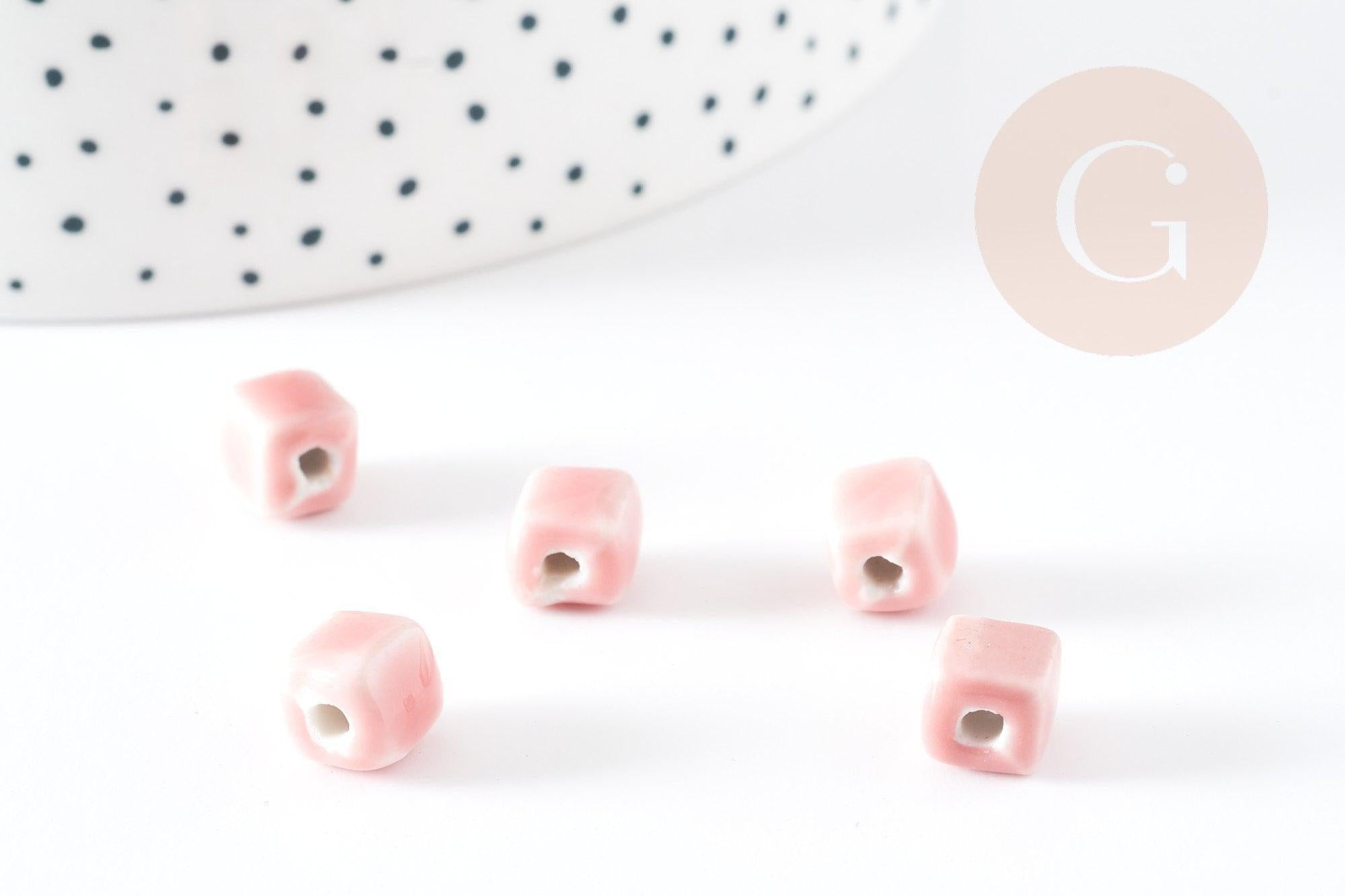 Perles cube céramique rose 8mm, perles porcelaine création bijoux, x5 G9150