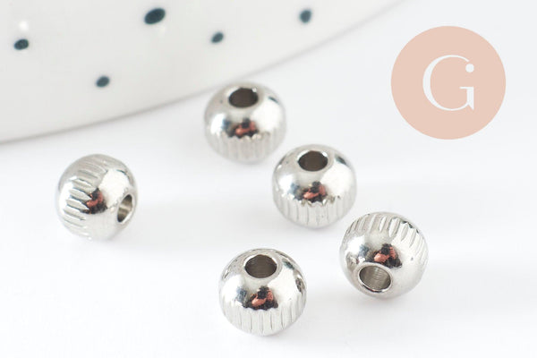 Siempre necesitamos cuentas espaciadoras de 6 mm en la creación de bisutería DIY . Son de acero inoxidable plateado liso con pequeñas crestas y brillantes.