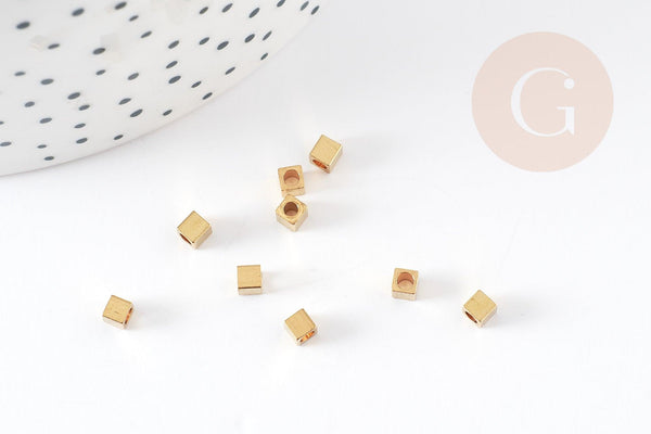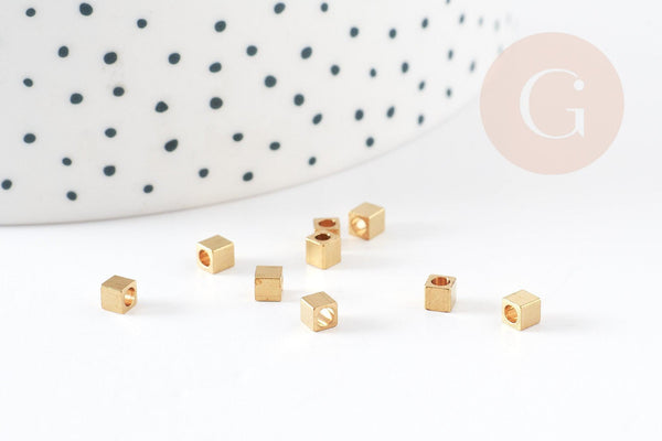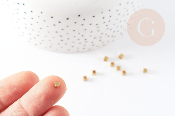 Perles intercalaires carré laiton brut,perle laiton, perles dorées, création bijoux, laiton brut,3mm, x100 (15.4gr) G3156