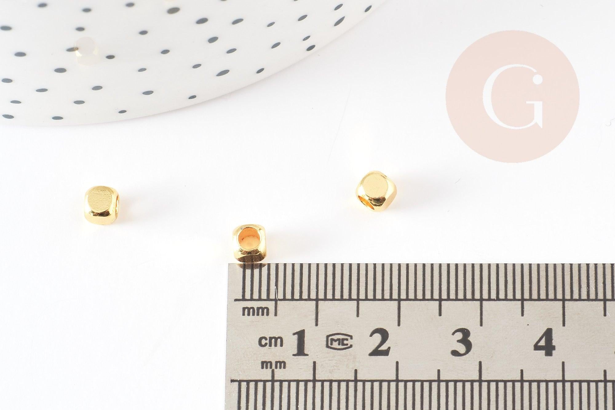 Cuenta cubo de latón dorado 4x4mm, cuentas doradas, creación de joyas, cuentas espaciadoras, x10 G6609