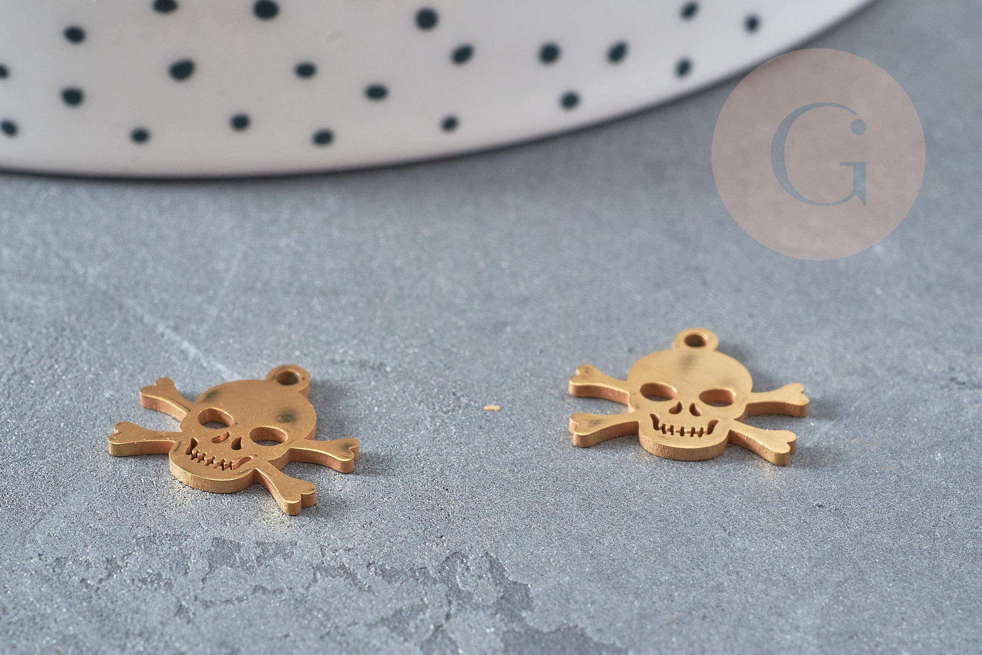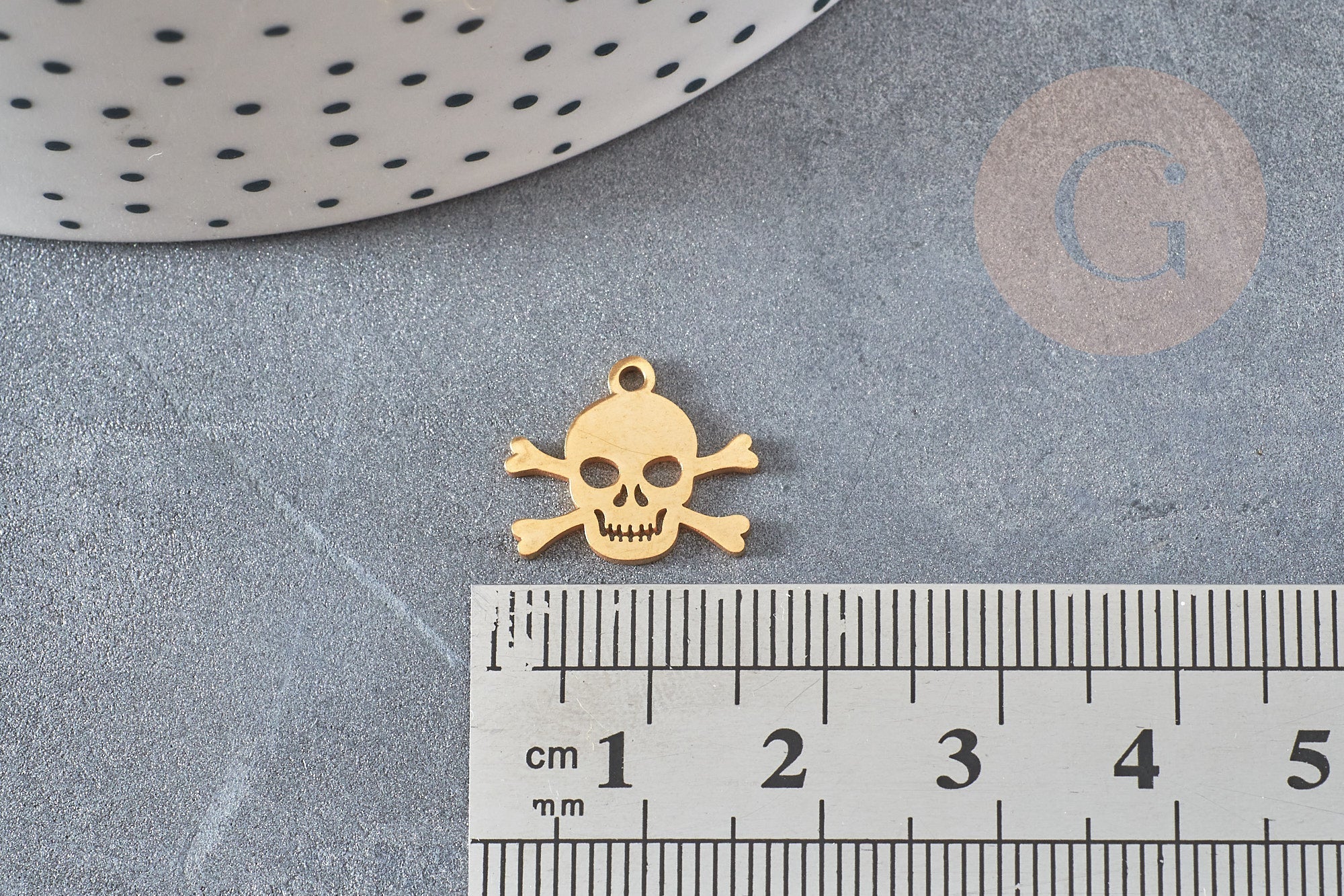 ¡Un colgante de acero bañado en oro con forma de calavera, el símbolo de los piratas!