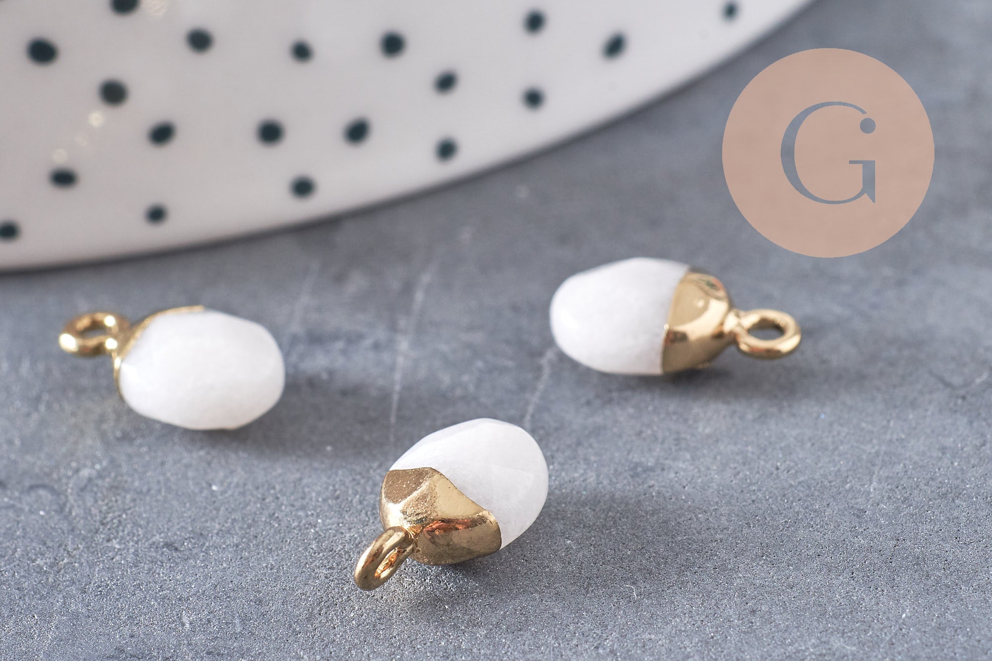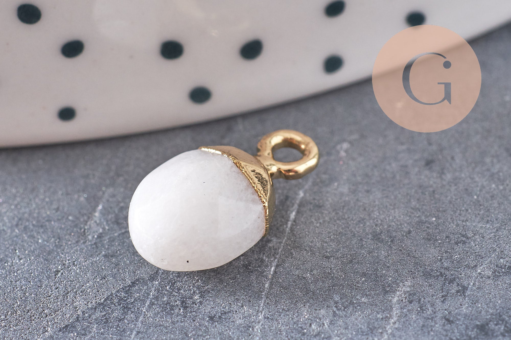 Pendentif goutte jade blanc naturel 14mm, x1 (G3721)