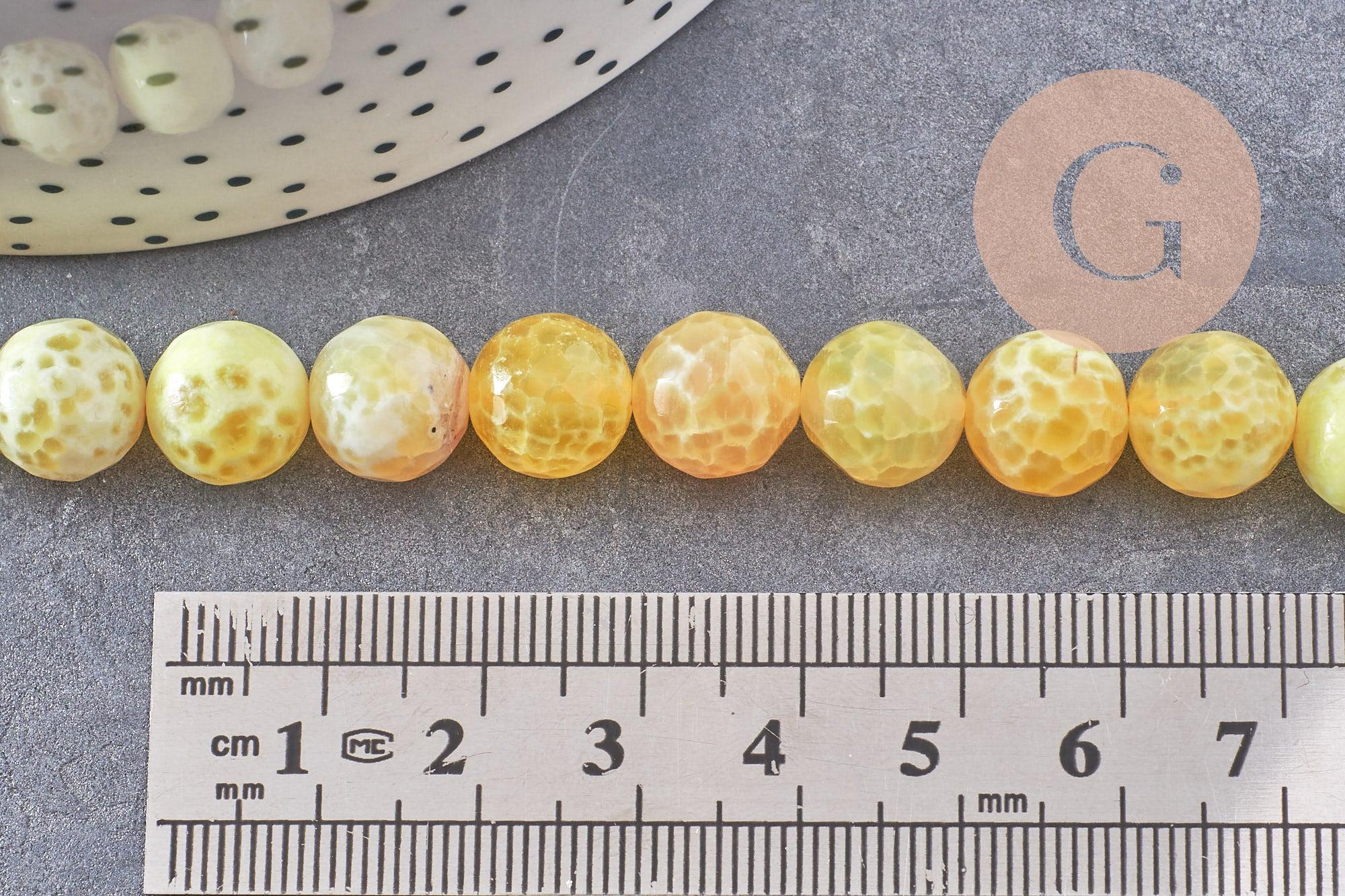 Perle agate feu rayée naturelle jaune facettée 10mm, x1 fil de 39cm (G2649)