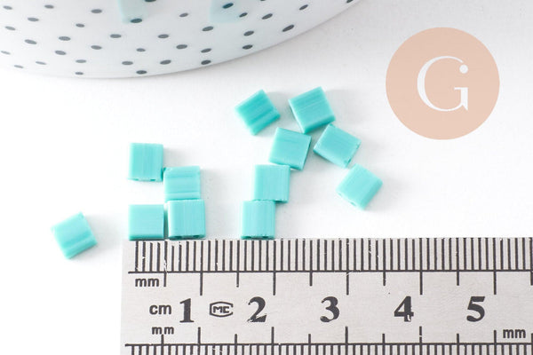 Cuentas de vidrio cuadradas rectangulares verdes, creación de pulseras de cuentas cuadradas, cuentas de tila, 4,5 mm, 2 agujeros, x50 (4,8 gr) (G5480)