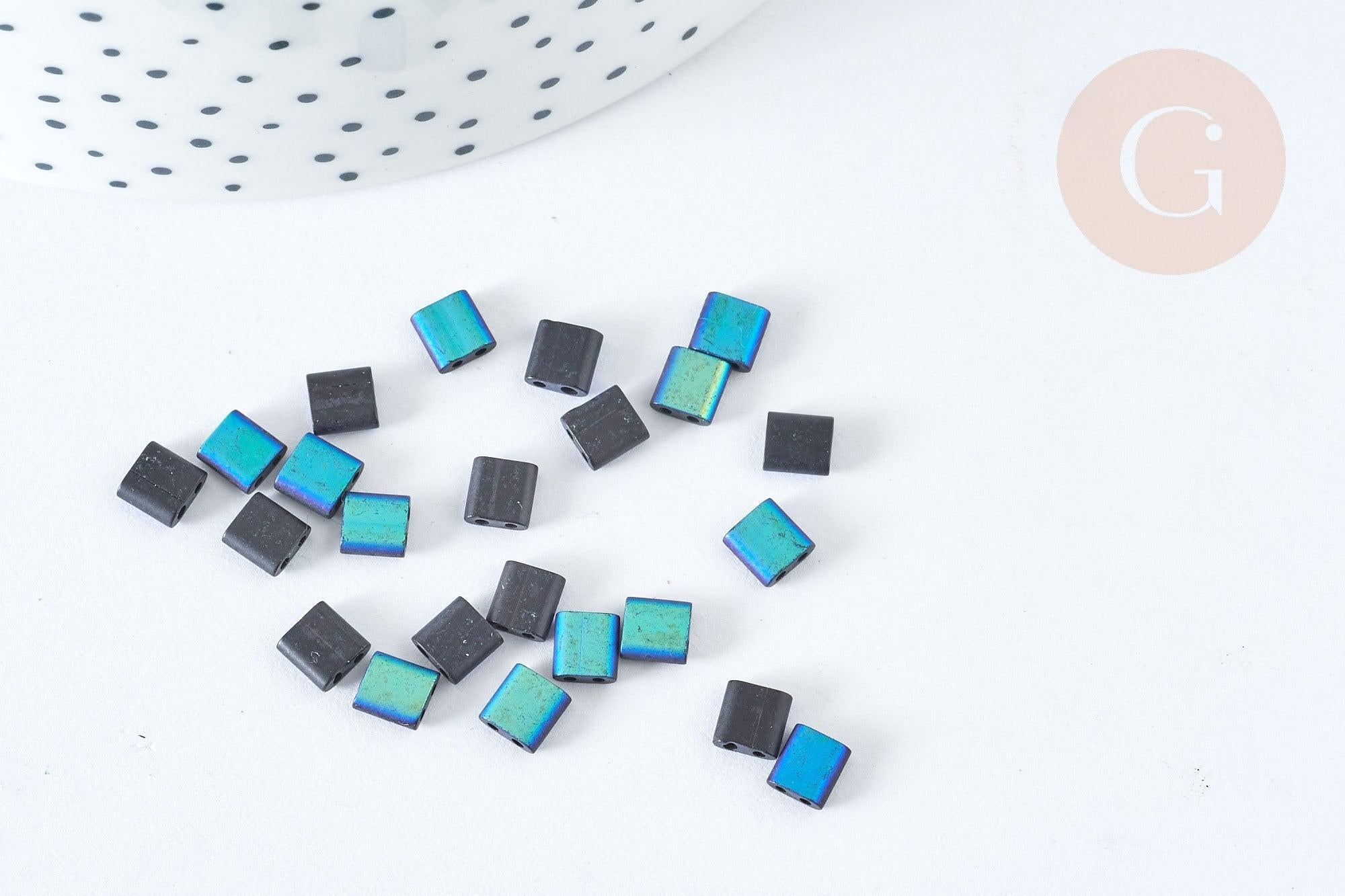 Cuentas de vidrio cuadradas rectangulares negras mate azul iridiscente opaco, creación de pulseras, cuentas tila, 4,5 mm, 2 agujeros, x50 (4,8 gr) G7481)