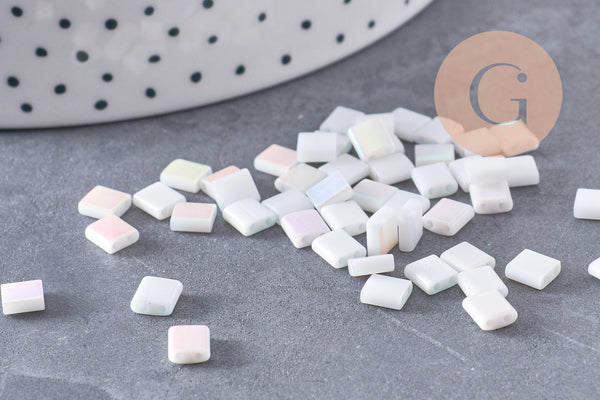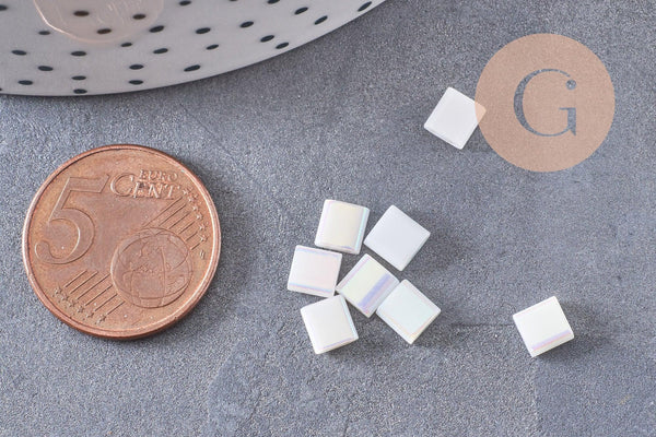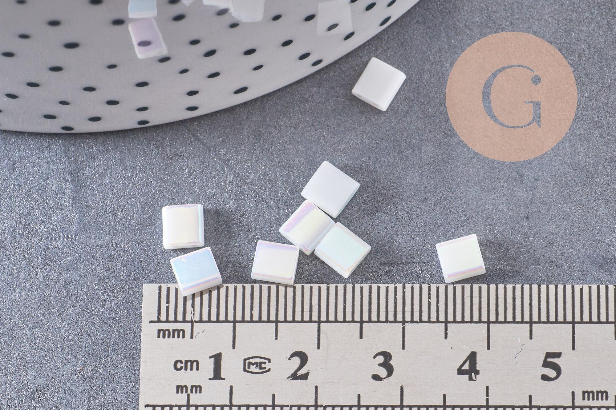 Cuentas de vidrio rectangulares iridiscentes de color blanco de 5 mm, creación de pulseras de cuentas cuadradas, cuentas de tila, 4,5 mm, 2 agujeros, x50 (4,8 GR) (G4454)