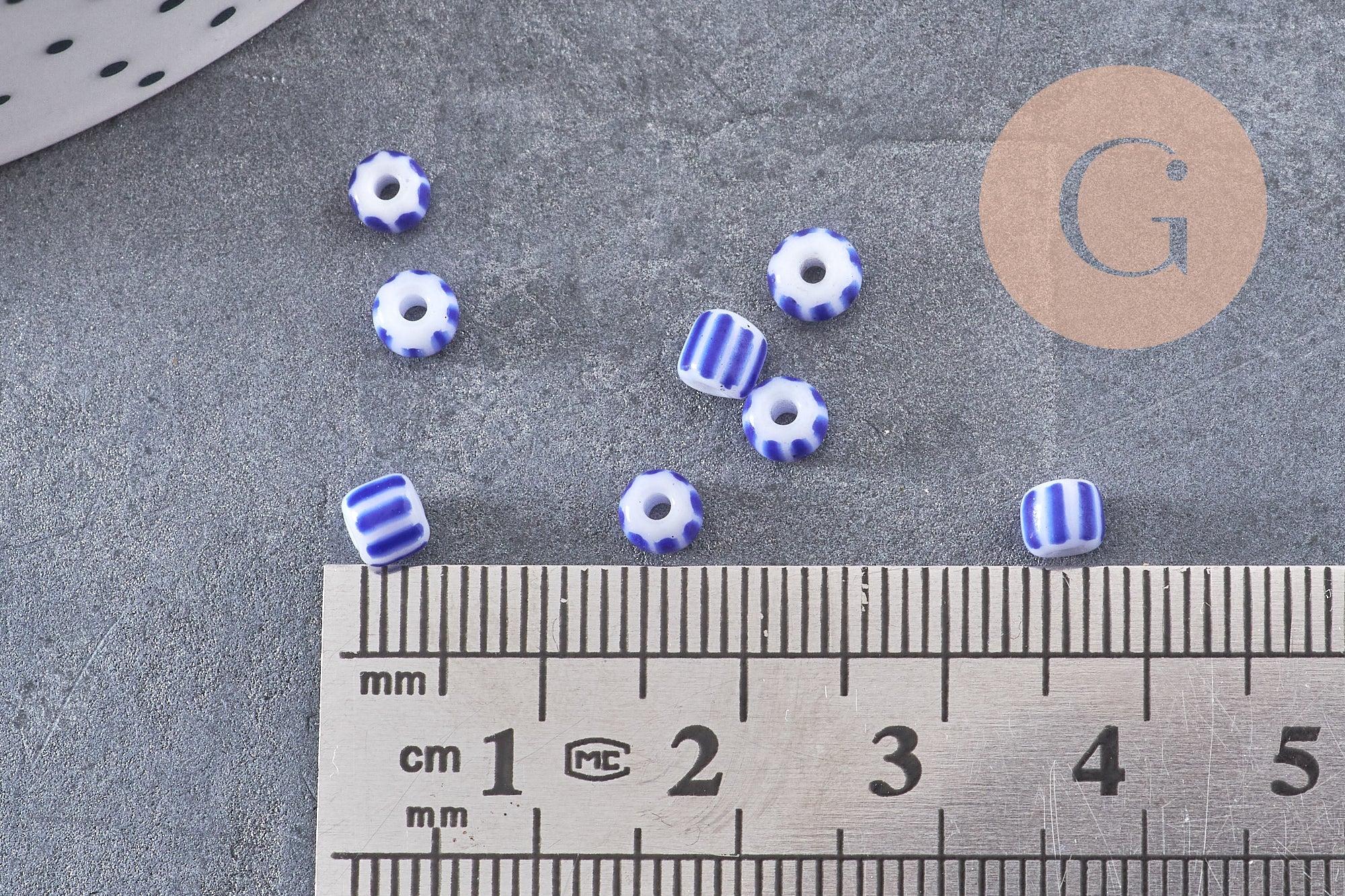 Descubre nuestras grandes cuentas de rocalla rayadas azul-blancas de 3-4,5 mm, bicolor, ideales para crear joyería. Este set contiene 10 gramos de cuentas de rocalla rayadas multicolor, perfectas para añadir un toque de color y textura a tus creaciones.