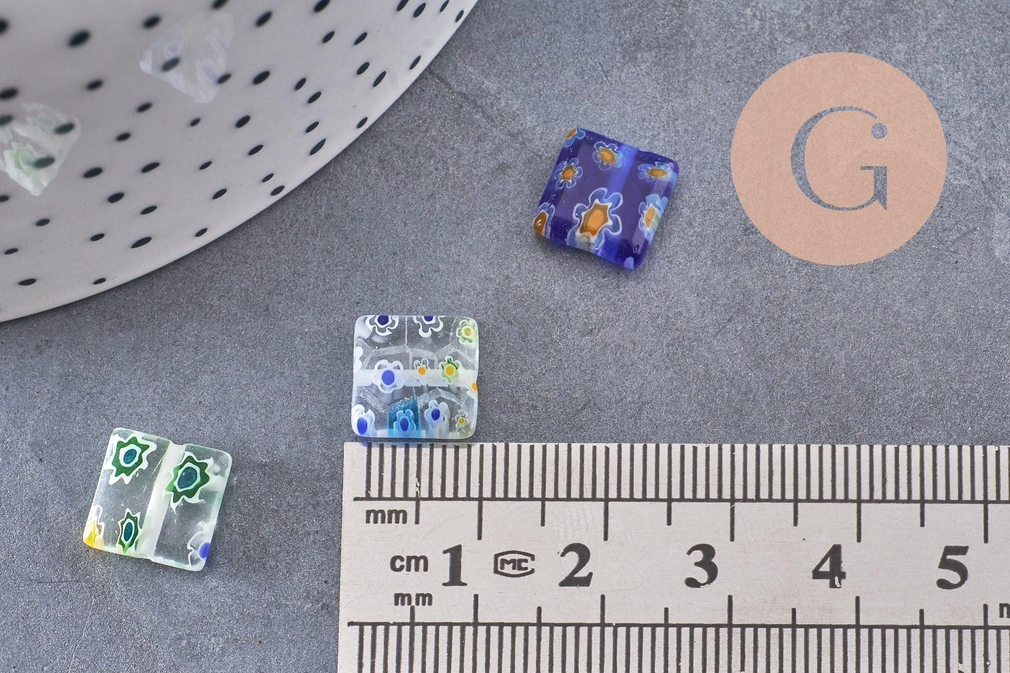 Cuenta de vidrio millefiori cuadrada, cuenta de vidrio, vidrio artesanal, cuenta de joyería de verano, creación de joyería de 10 mm, 5 cuentas