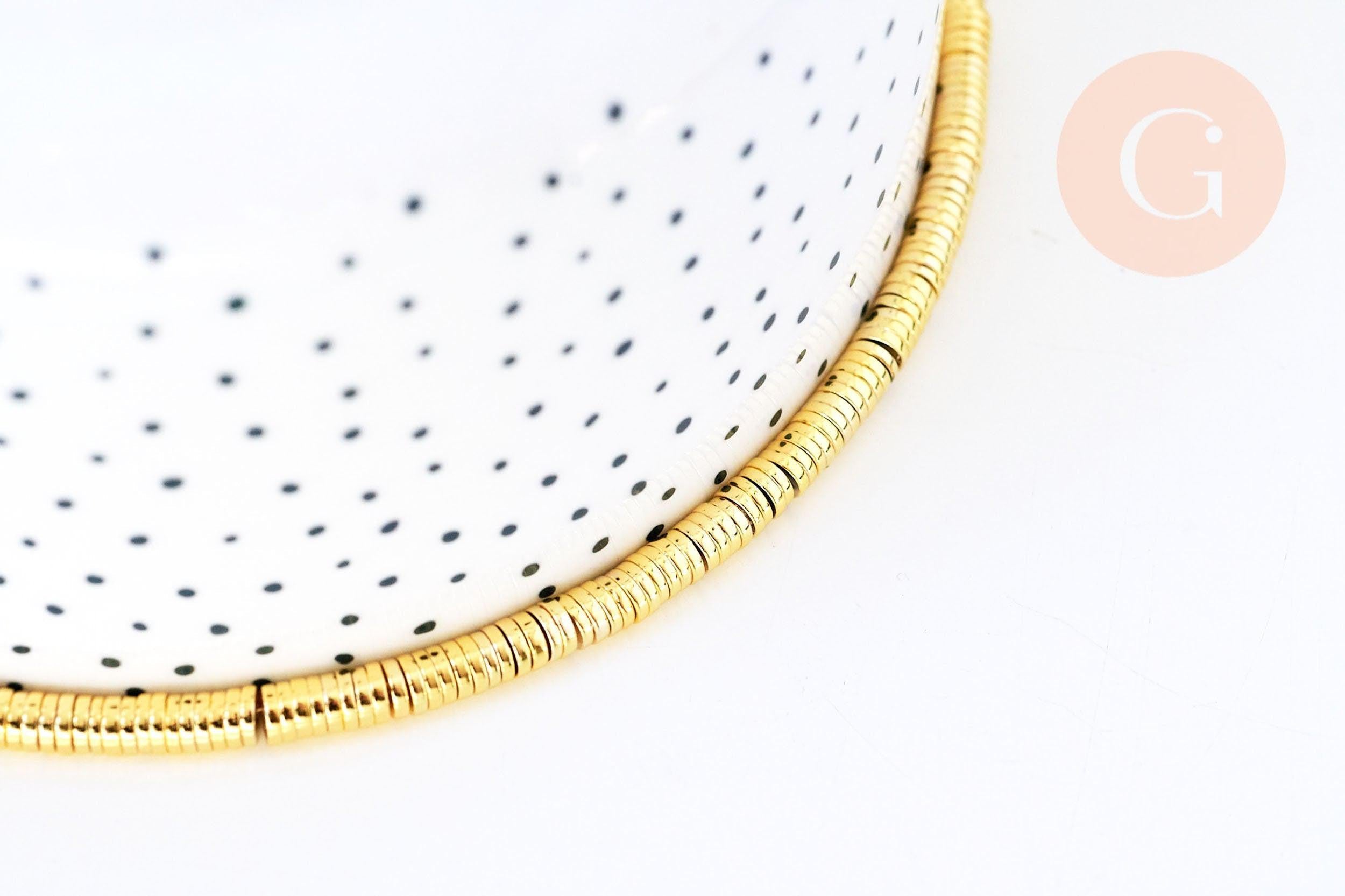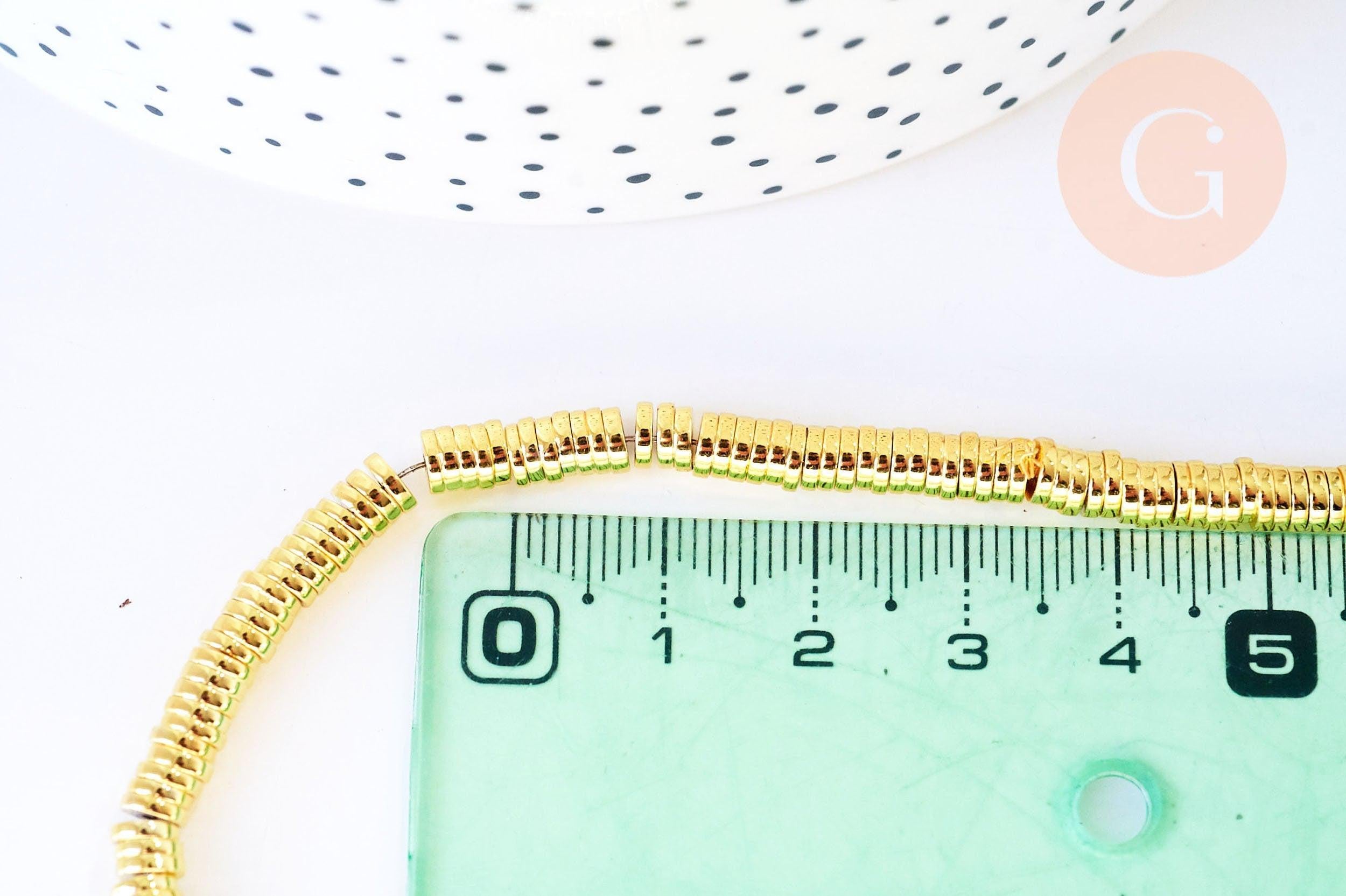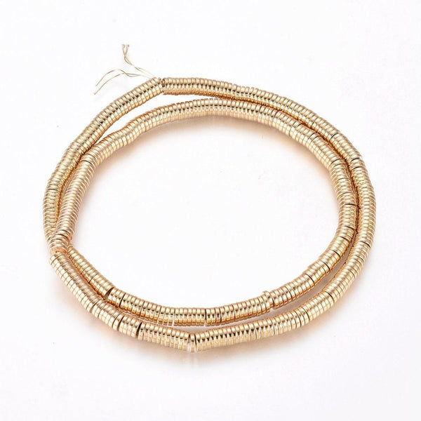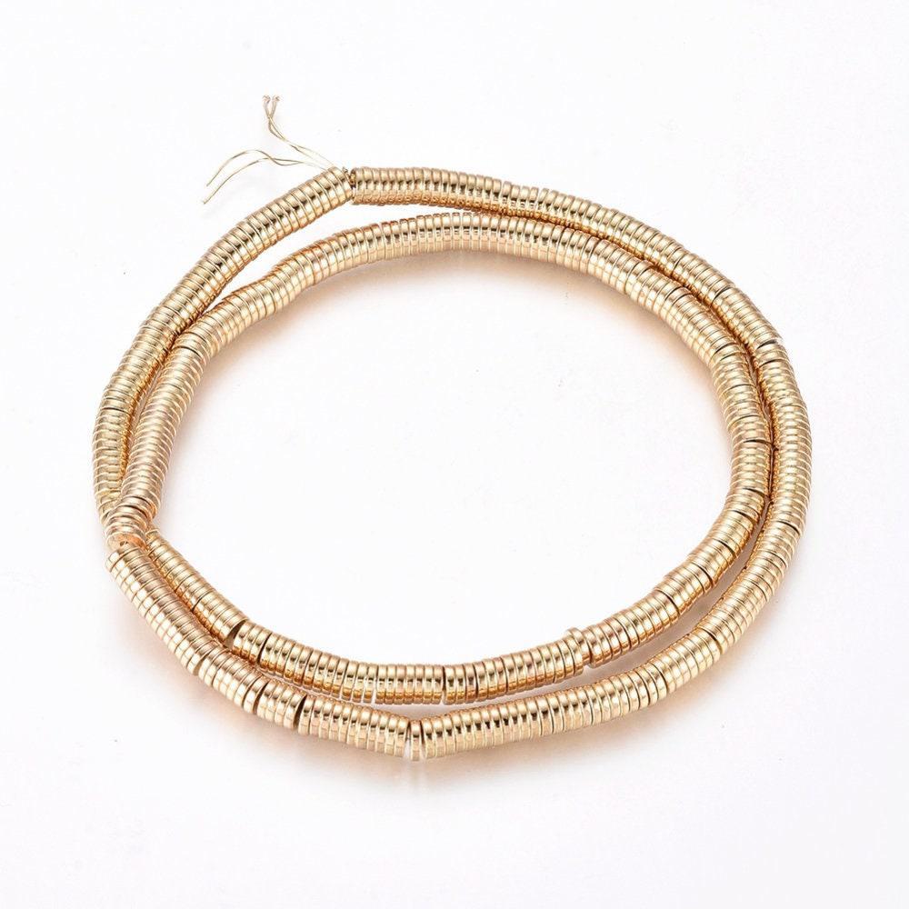 Cuentas redondas de hematita dorada, cuentas de piedra heishi, 4 x 1 mm, tira de 390 cuentas x1 (G3627)