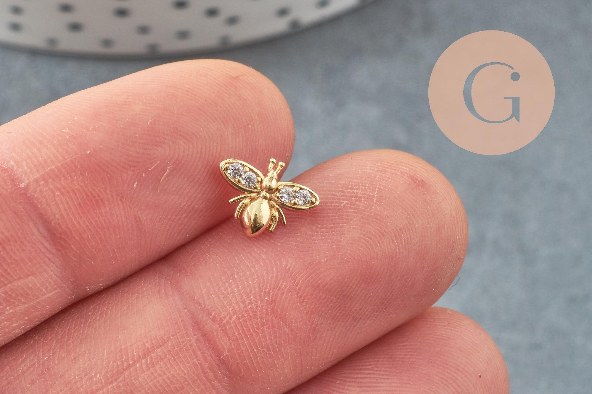 Dale un toque chic y personalizado a tus joyas DIY con este dije cabujón de abeja para pegar en latón dorado decorado con circonitas blancas . ¡Un dije elegante y moderno para realzar tus creaciones de bisutería!