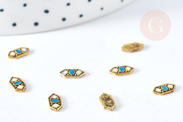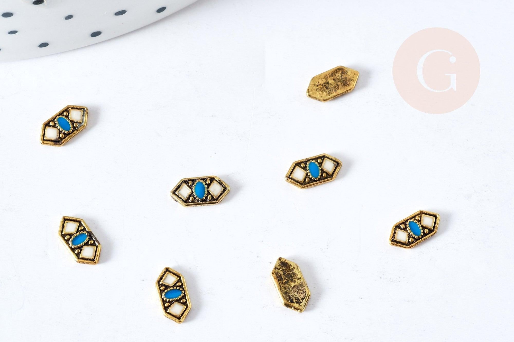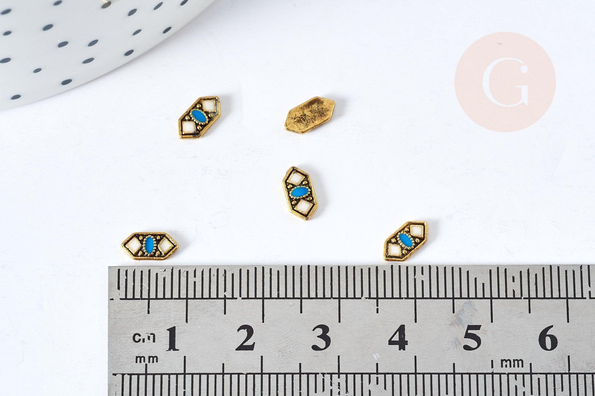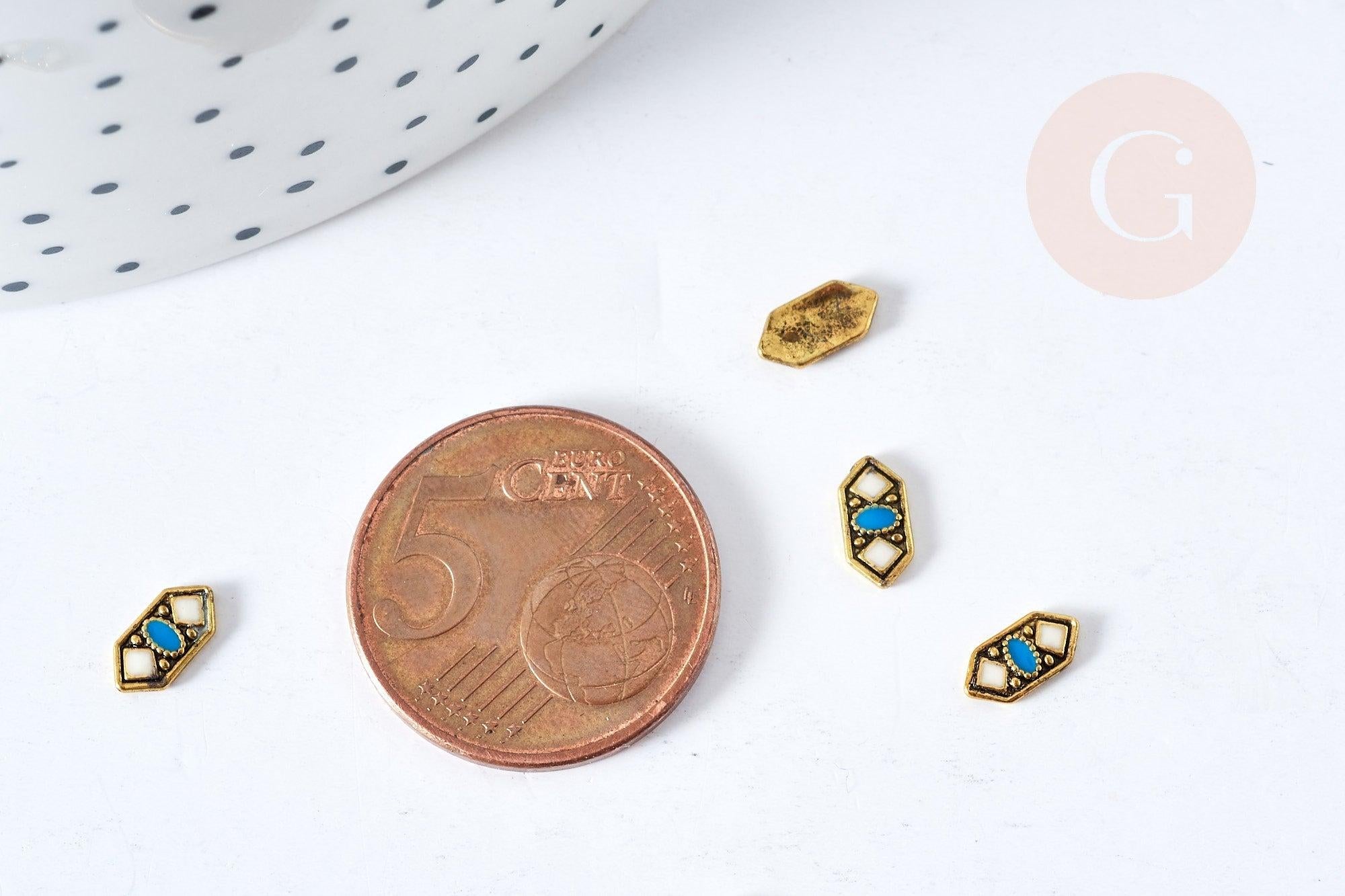 Charm à coller zamac géométrique bronze émail bleu & blanc 7.5mm, x5 (G8527)