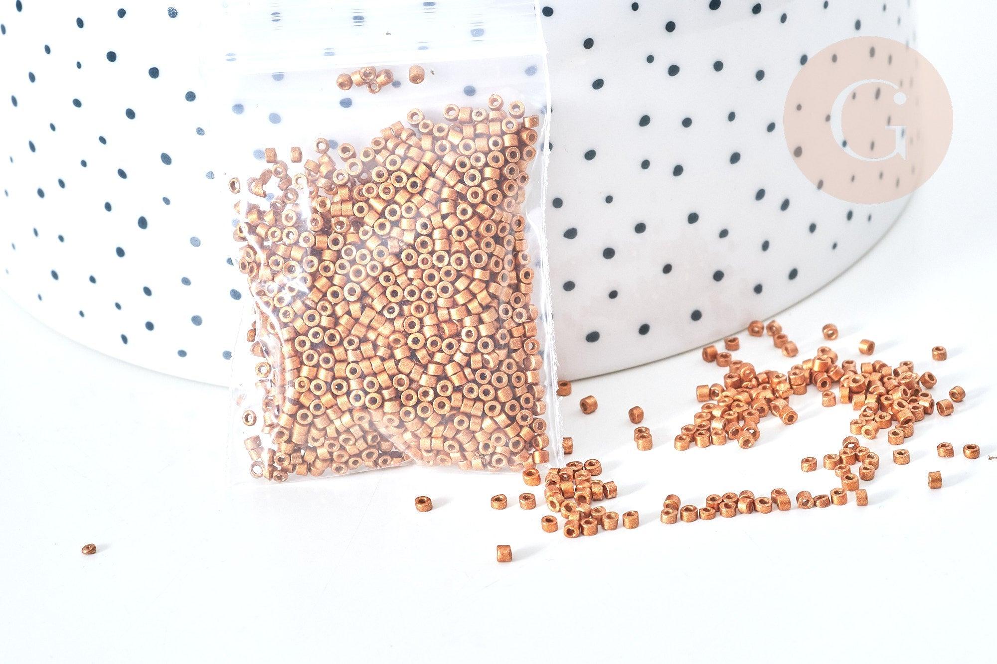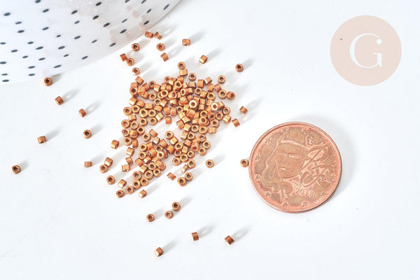 Perles tube cuivre métallisé mat façon Delica miyuki 2mm, x1 Sachet 8g (G7760)