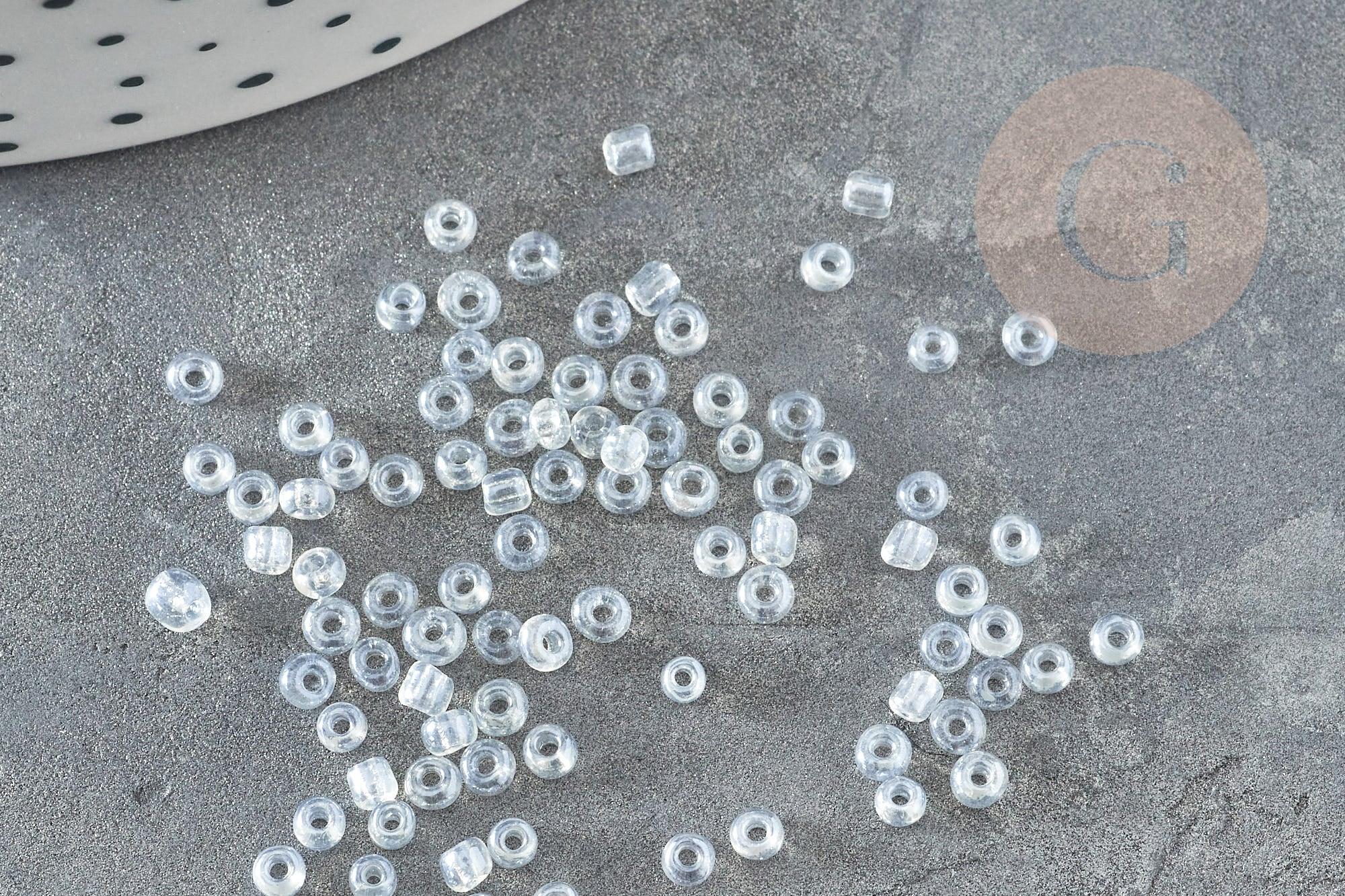 Descubra nuestras pequeñas cuentas de semillas transparentes iridiscentes de 2 mm , suministros ideales para crear joyas.