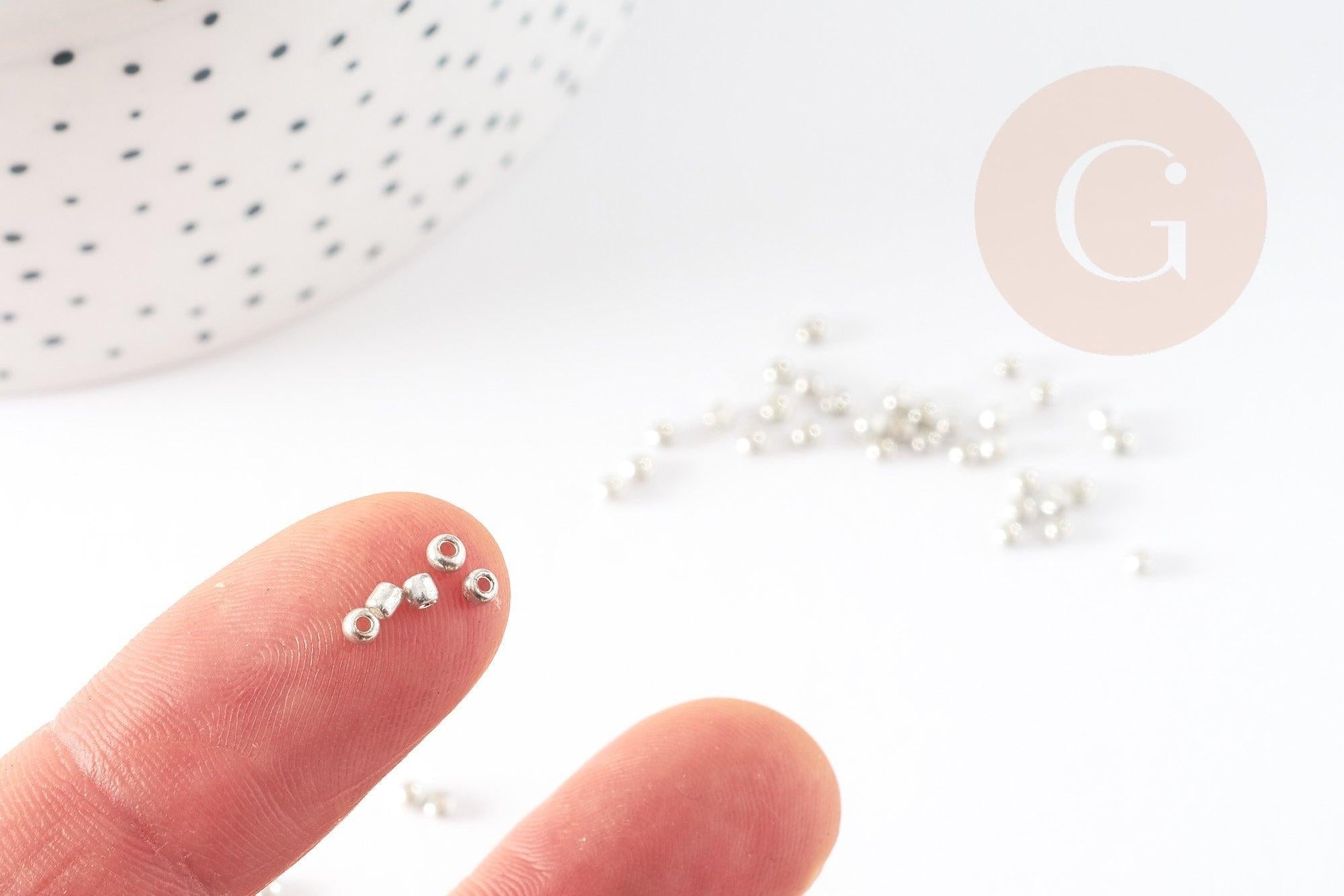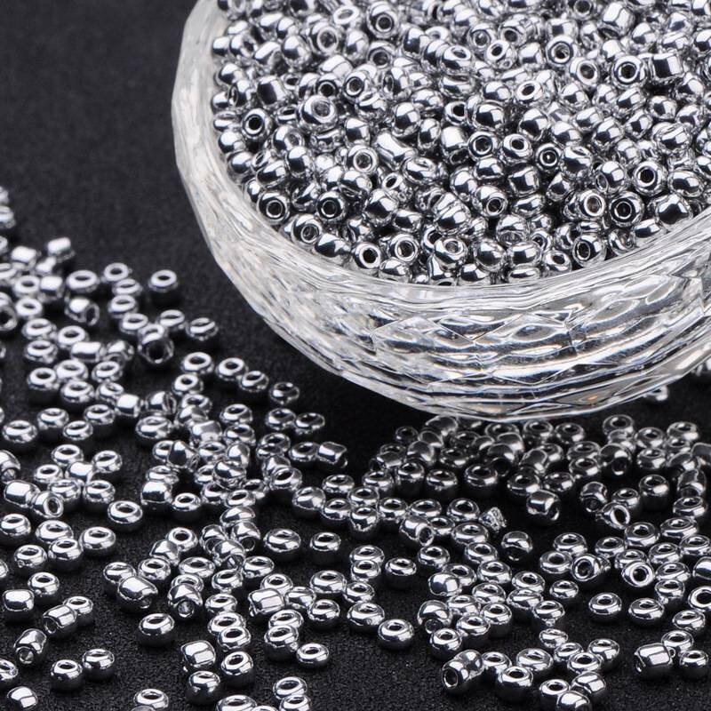 Pequeñas cuentas de semillas metálicas plateadas brillantes de 2 mm, x 10 g (G2401)