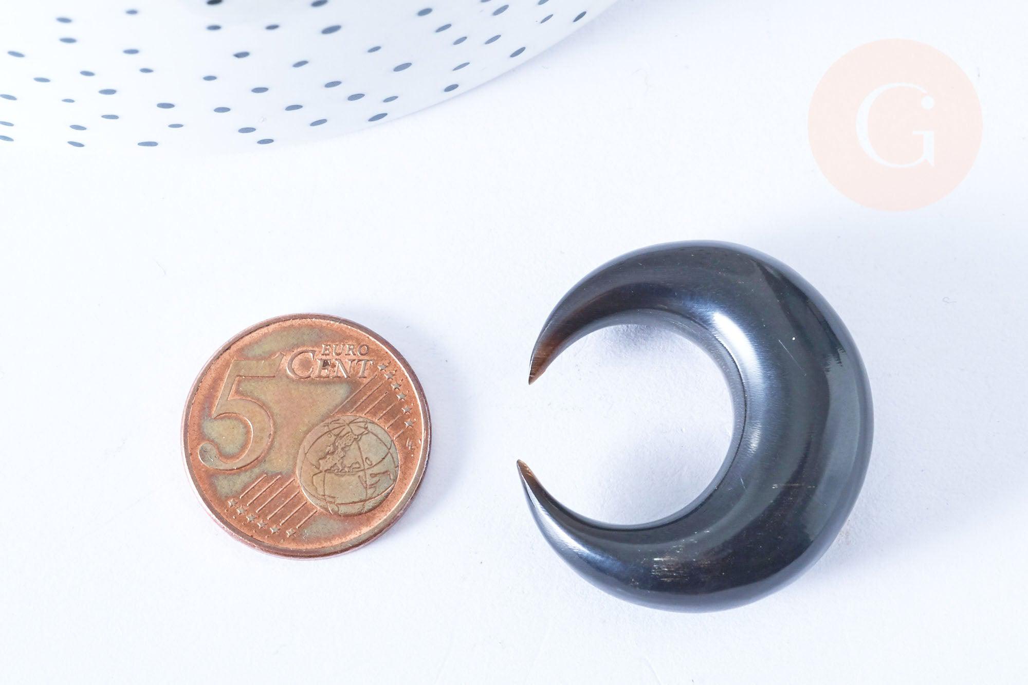 Pendentif Lune corne noire naturelle 37x12mm, pendentif lune en corne naturelle noire, piercing écarteur corne naturelle x1 - G6479