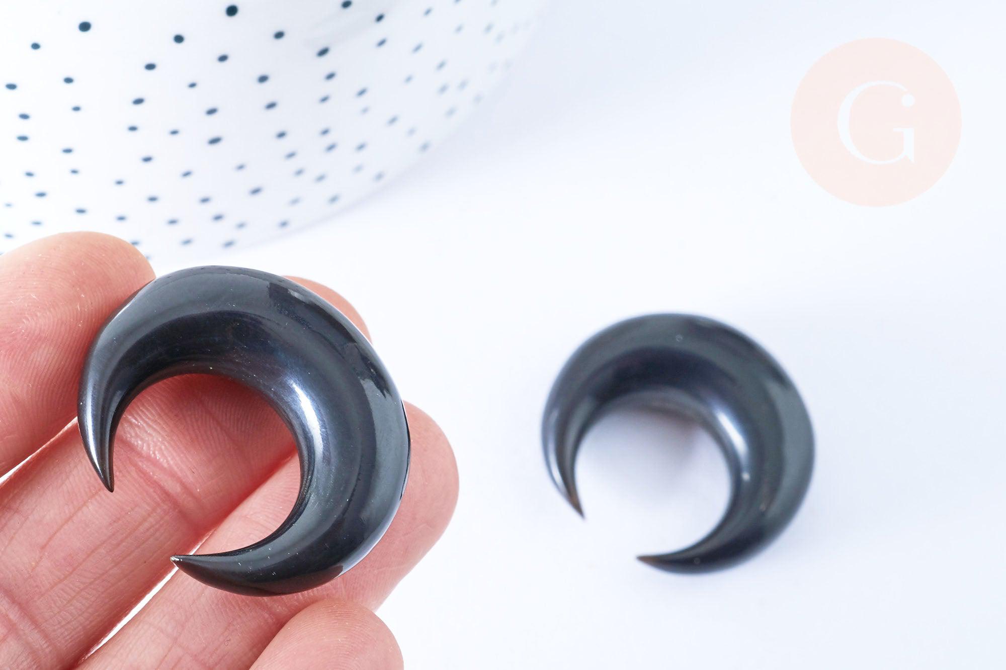 Colgante luna de cuerno negro natural 37x12mm, colgante de luna de cuerno negro natural, piercing expansor de cuerno natural x1 - G6479
