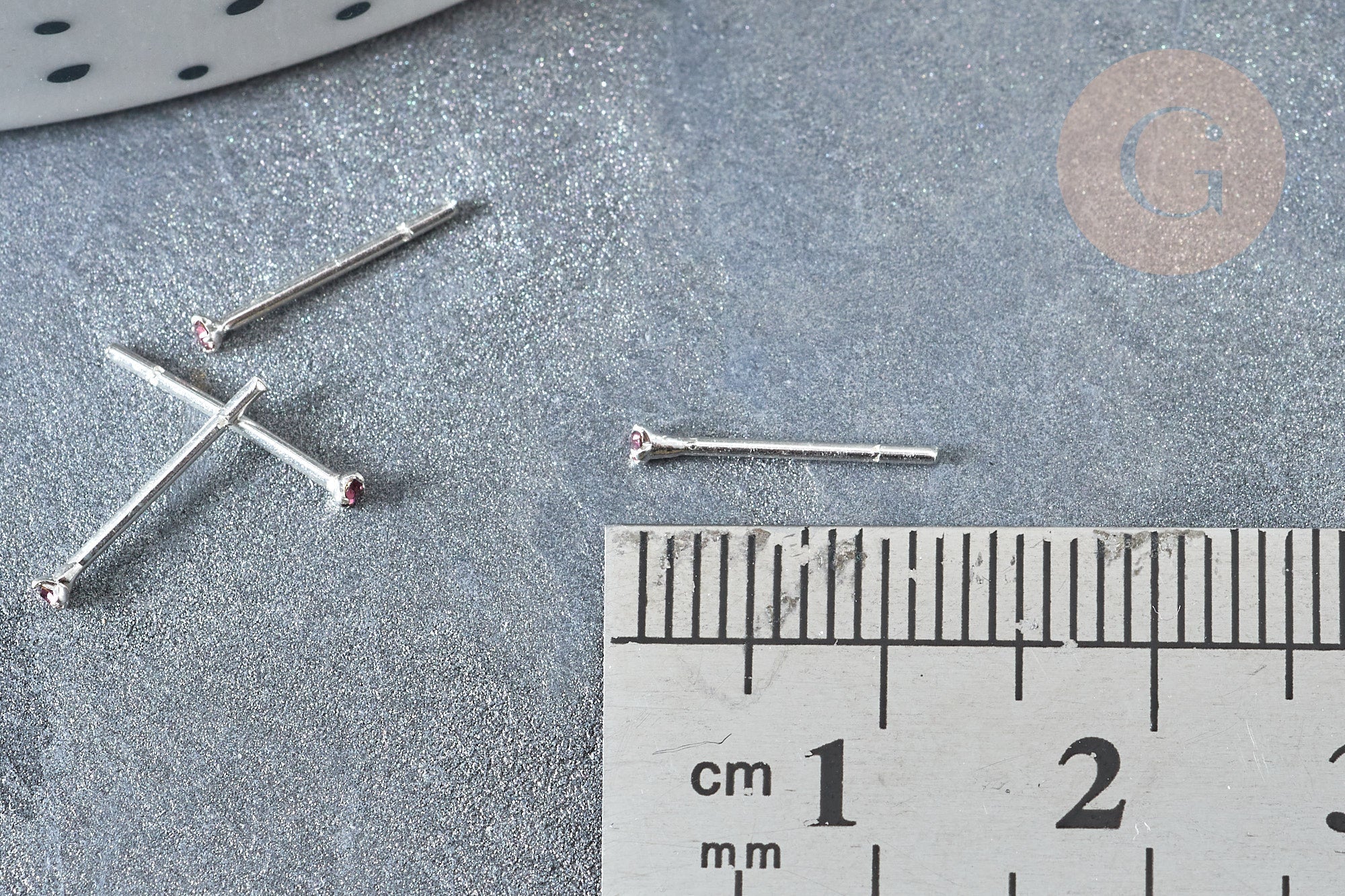 Piercing clou argent 925 massif strass couleur améthyste 1.5mm,x1 (G7596)